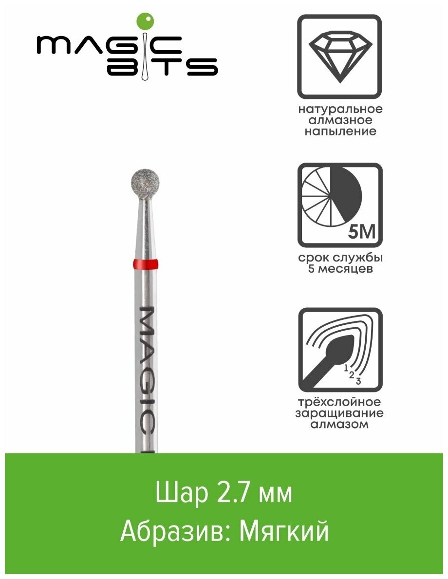 Magic Bits Алмазный шар 2.7 мм с натуральным напылением мягкого абразива интересное: