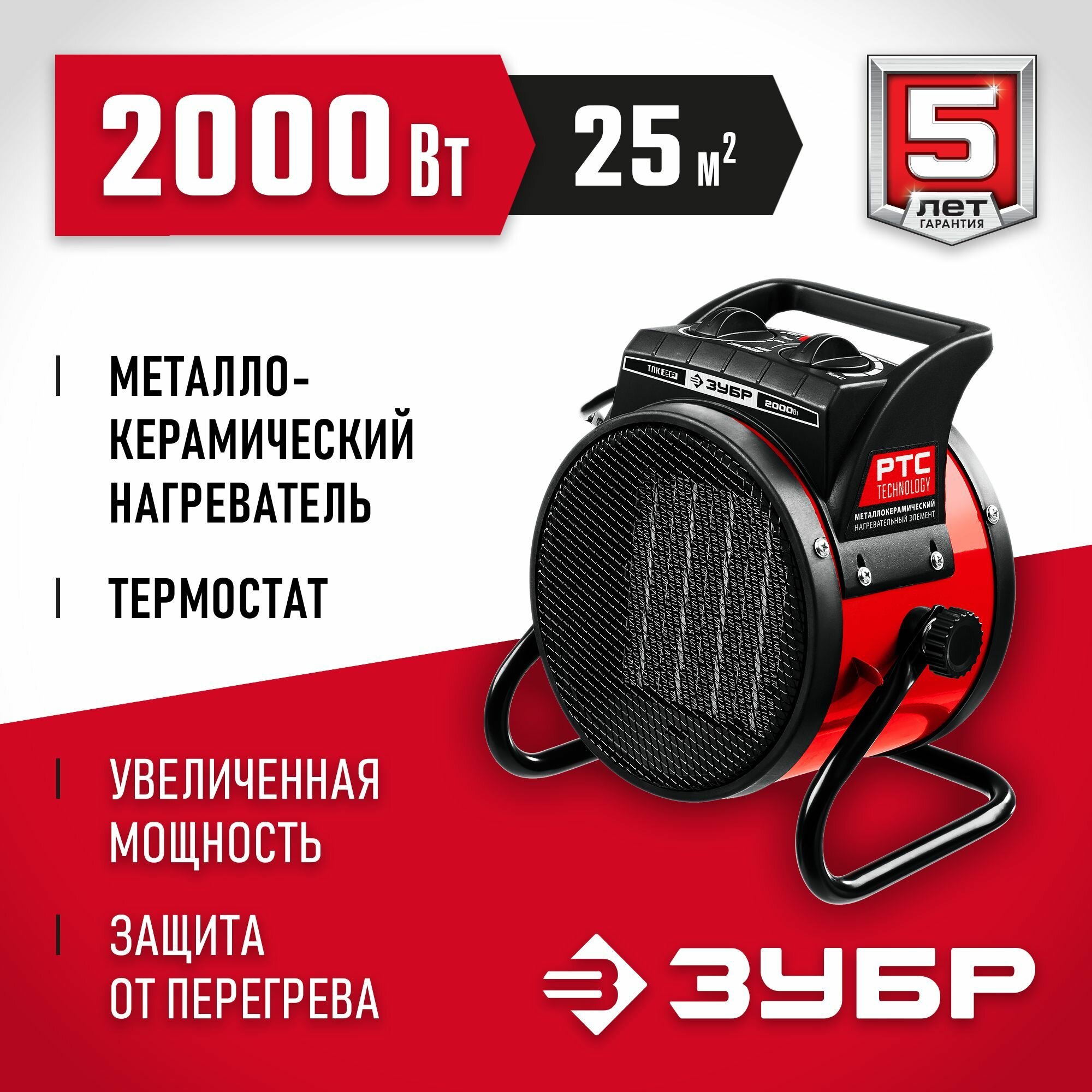 Купить ЗУБР 2 кВт, электрическая тепловая пушка (ТПК-2Р)