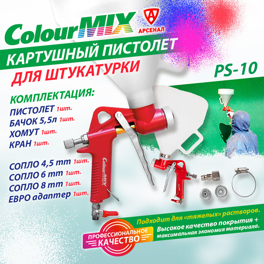 Краскопульт штукатурный Colour MIX (картушный пистолет), PS10 интересное:
