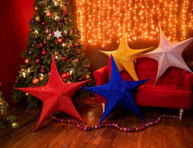 Звезда из ткани с блестками Snowhouse, складная конструкция, 110 см, красный (Z110R)