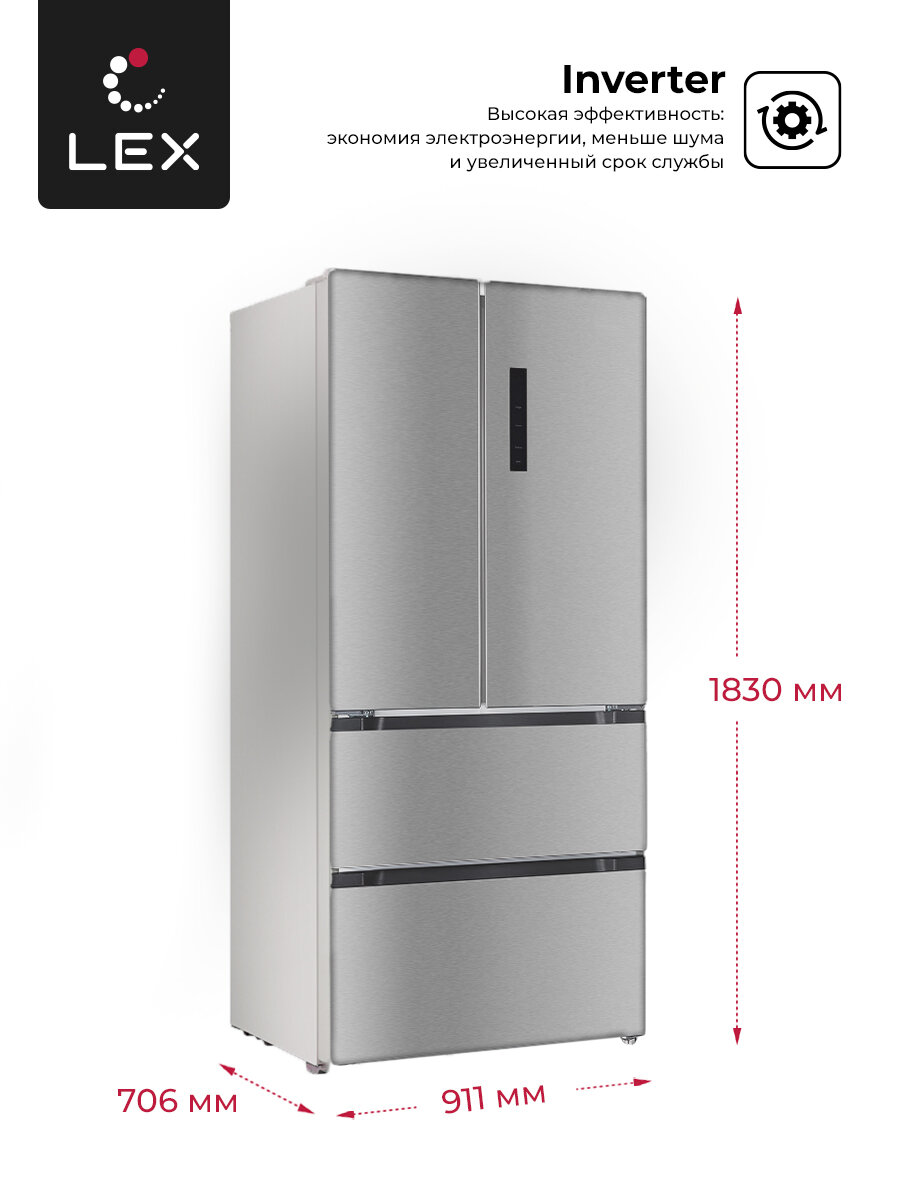 Холодильник трехкамерный отдельностоящий LEX LFD575LXID, Total NoFrost,Суперохлаждение, суперзаморозка, режим Отпуск , блокировка панели управления, электронное управление, ширина-91.1см.