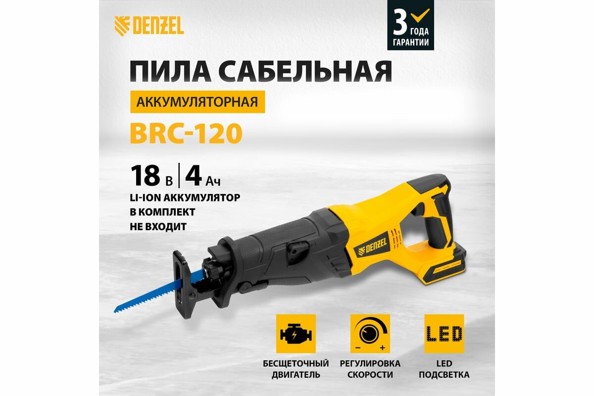 Пила сабельная аккумуляторная бесщет DENZEL BRC-120-0, 18В Li-Ion интересное: