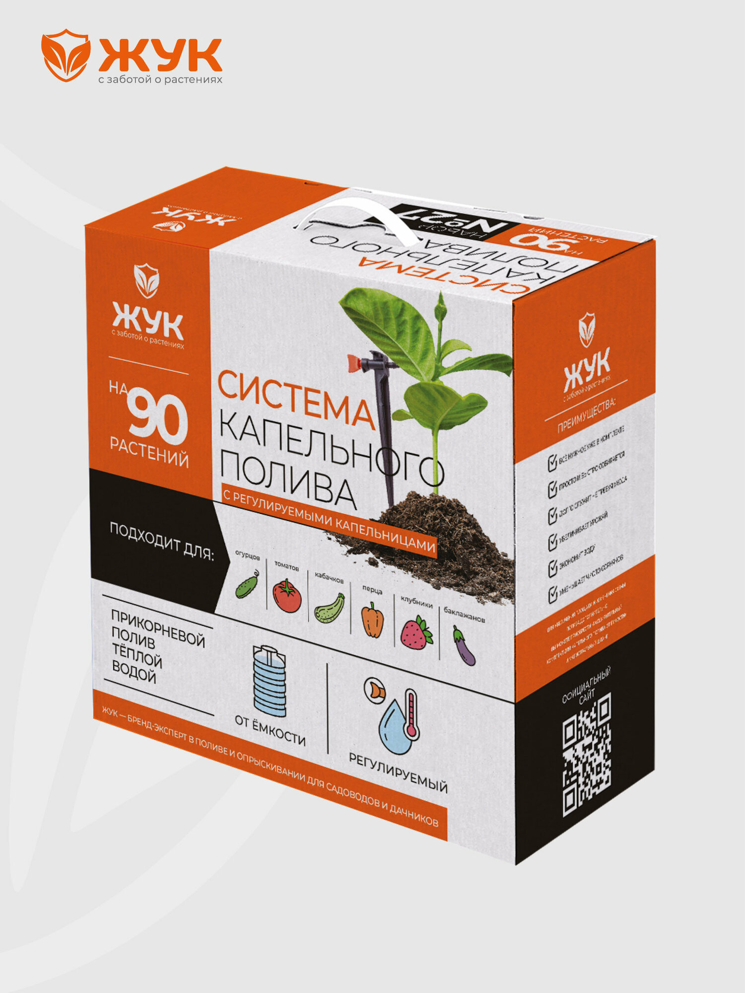 Комплект для капельного полива Жук, от емкости, регулируемые капельницы, 90 растений