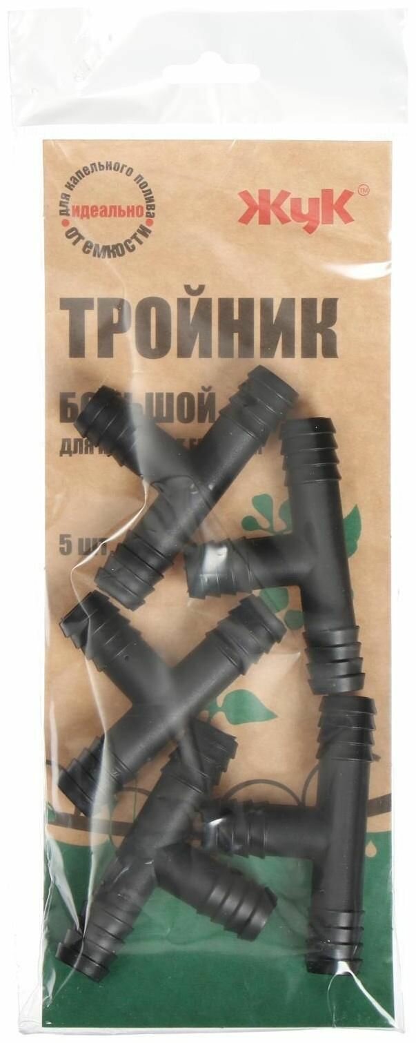 Купить Набор Т-образных соединителей для капельного полива от ёмкости, 1/2" (12 мм), 5 шт., «Жук»