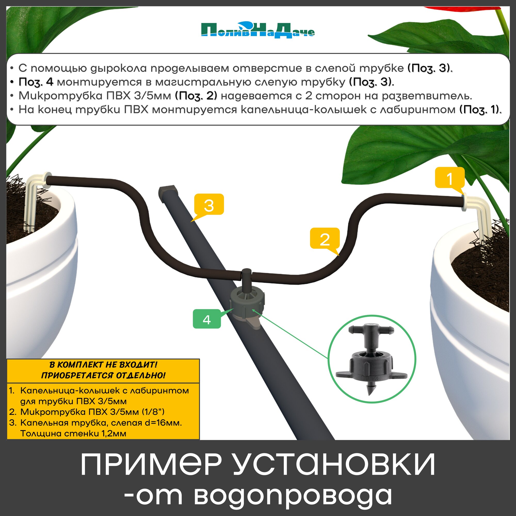 Внешняя капельница компенсированная 8 л/ч (разборная) с разветвителем на 4 выхода. Упаковка 20 шт + дырокол.