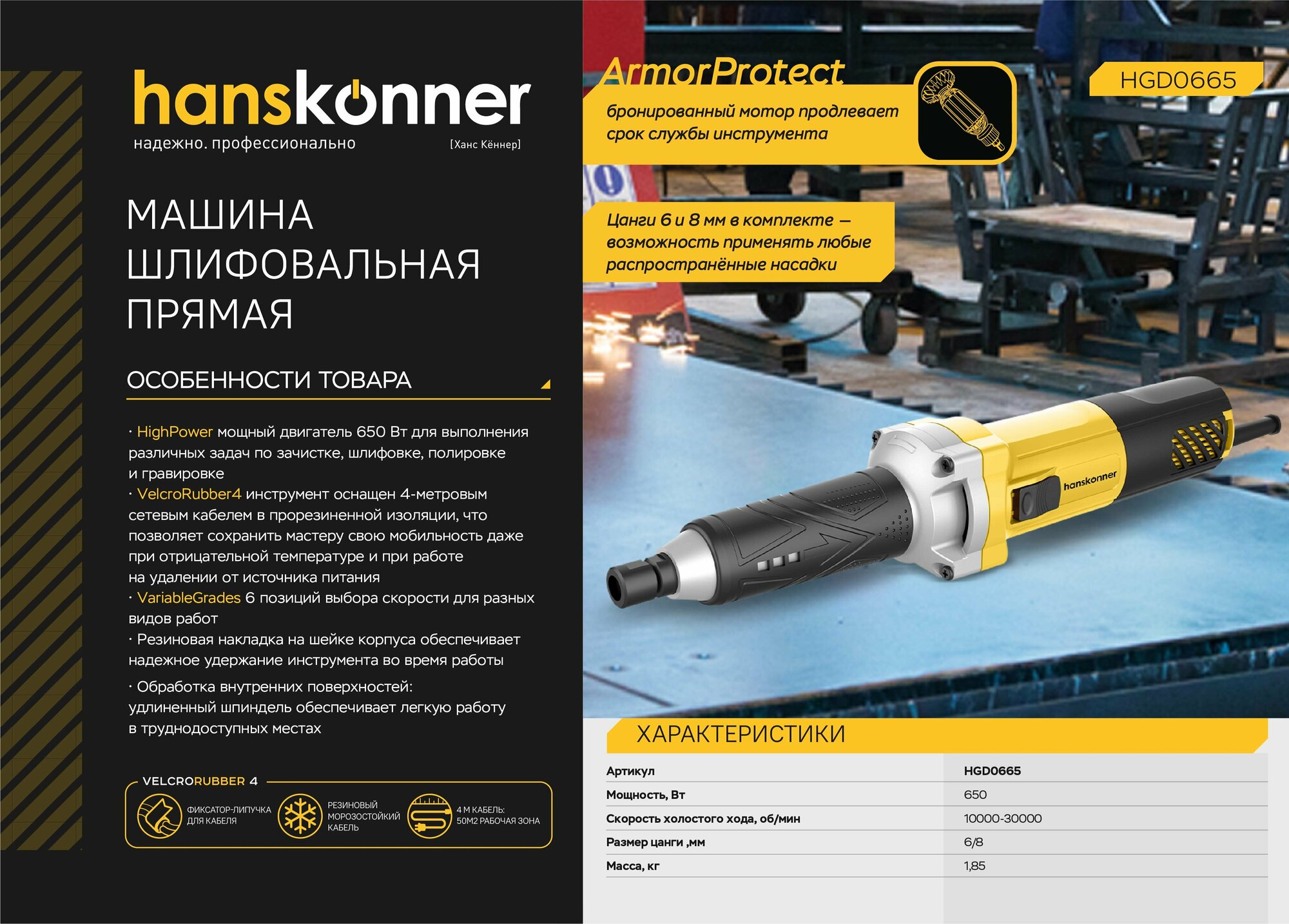 Прямошлифовальная машина Hanskonner HGD0665 интересное: