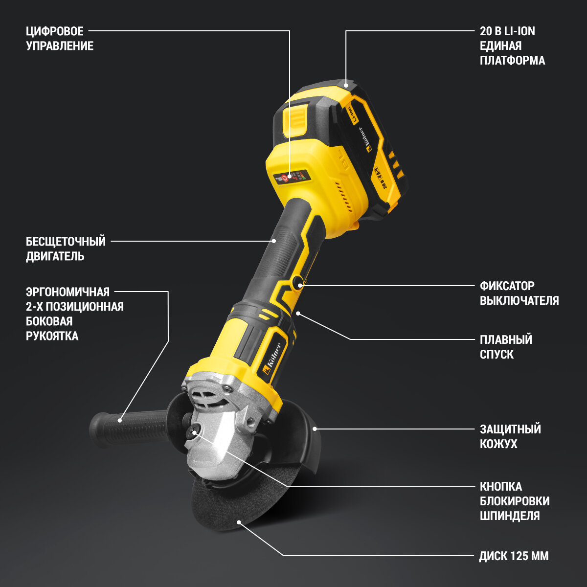 Аккумуляторная угловая шлифовальная машина Kolner KCAG12520BLVC интересное: