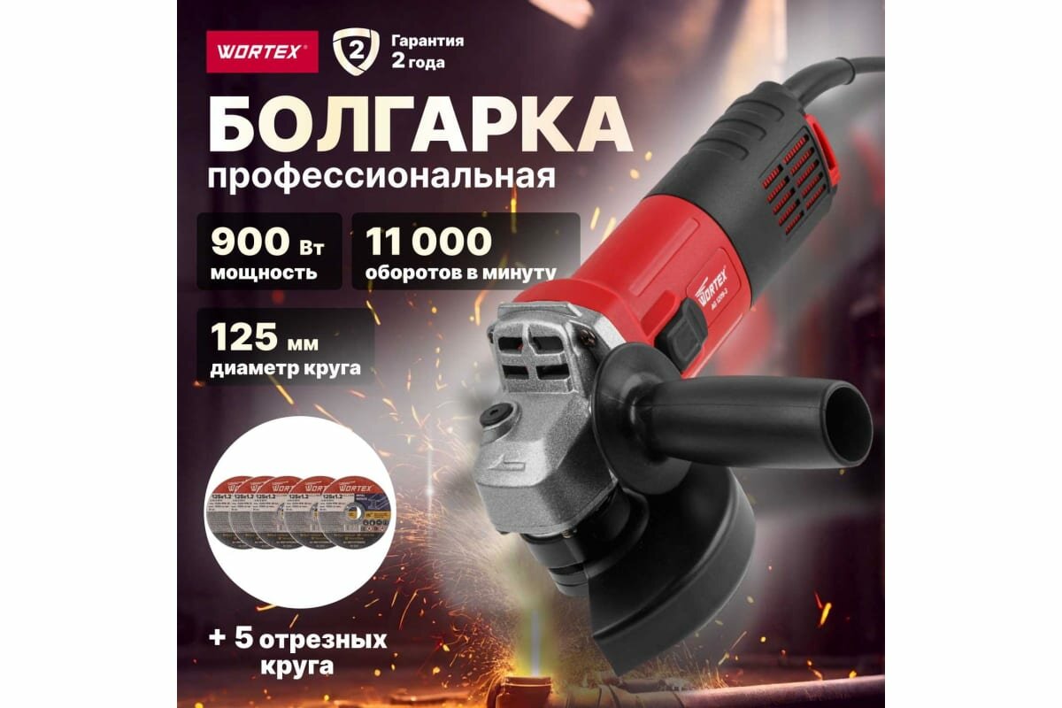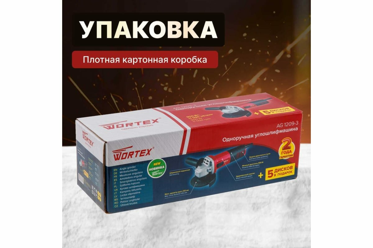 Одноручная углошлифмашина WORTEX AG 1209-3 интересное: