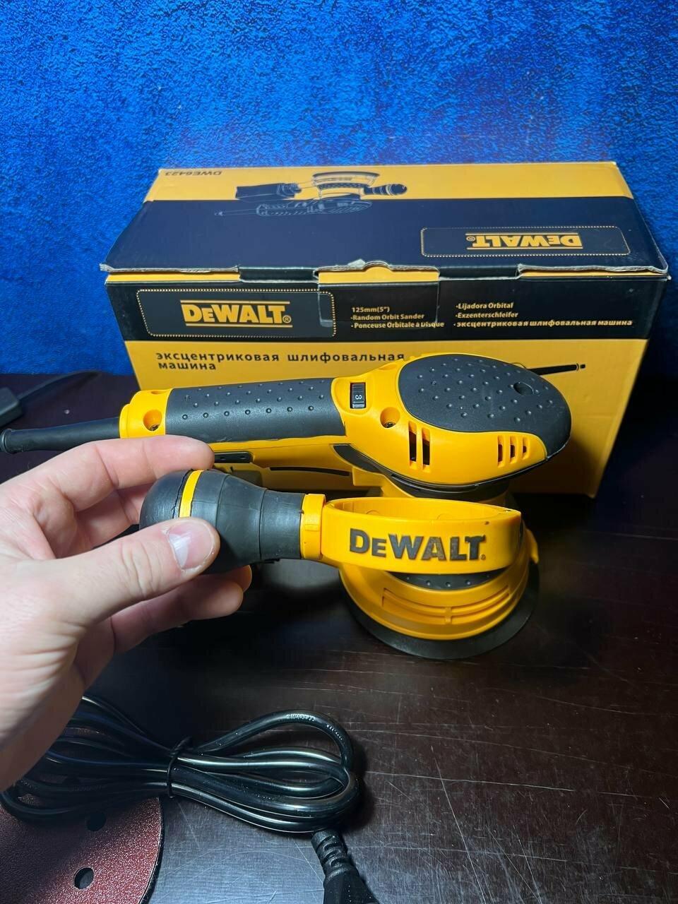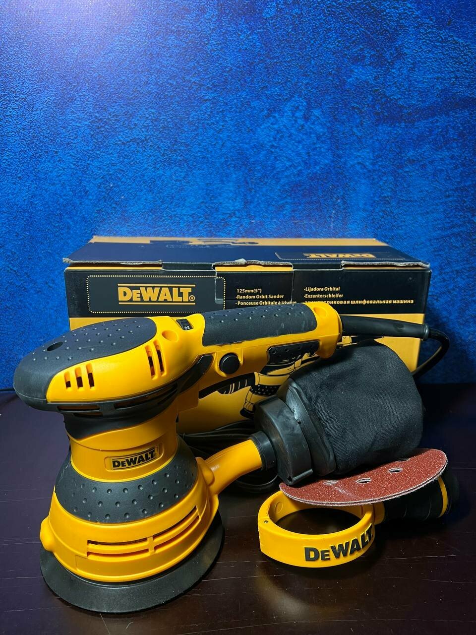 | Комплектация | 1,Эксцентрическая шлифмашина DeWalt DWE 6423; 2. Пылесборник 3. Круг абразивный; 4. Инструкция. |