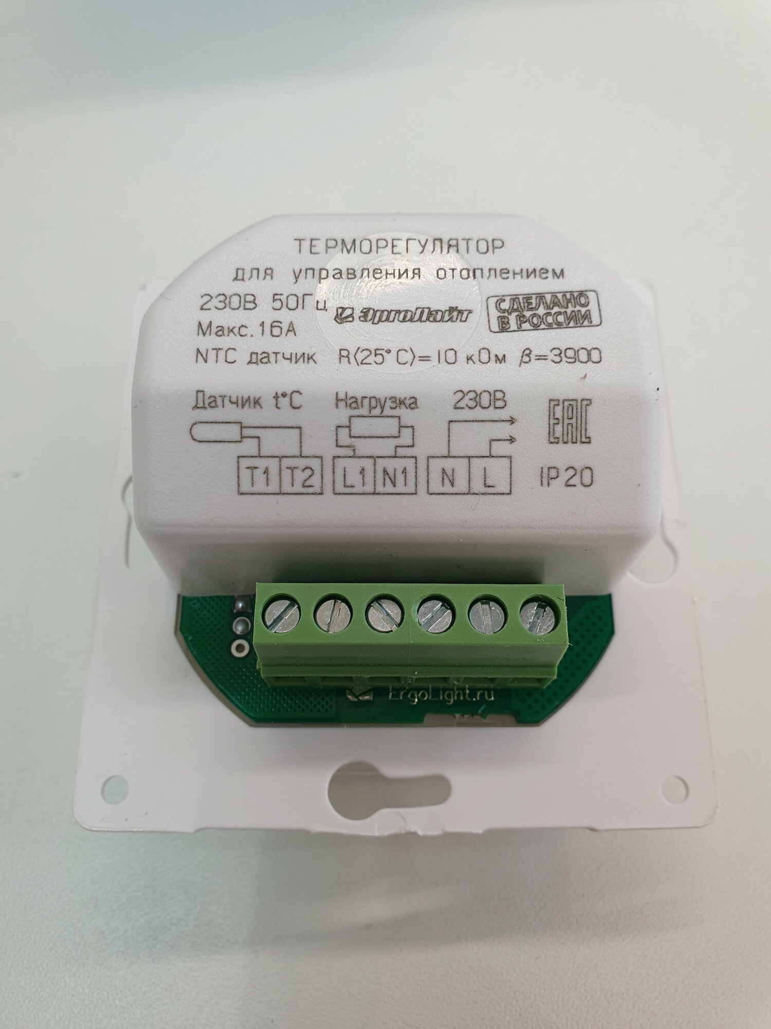 Терморегулятор ЭргоЛайт ТР-09 В (датчик воздуха, встраиваемый, белый)