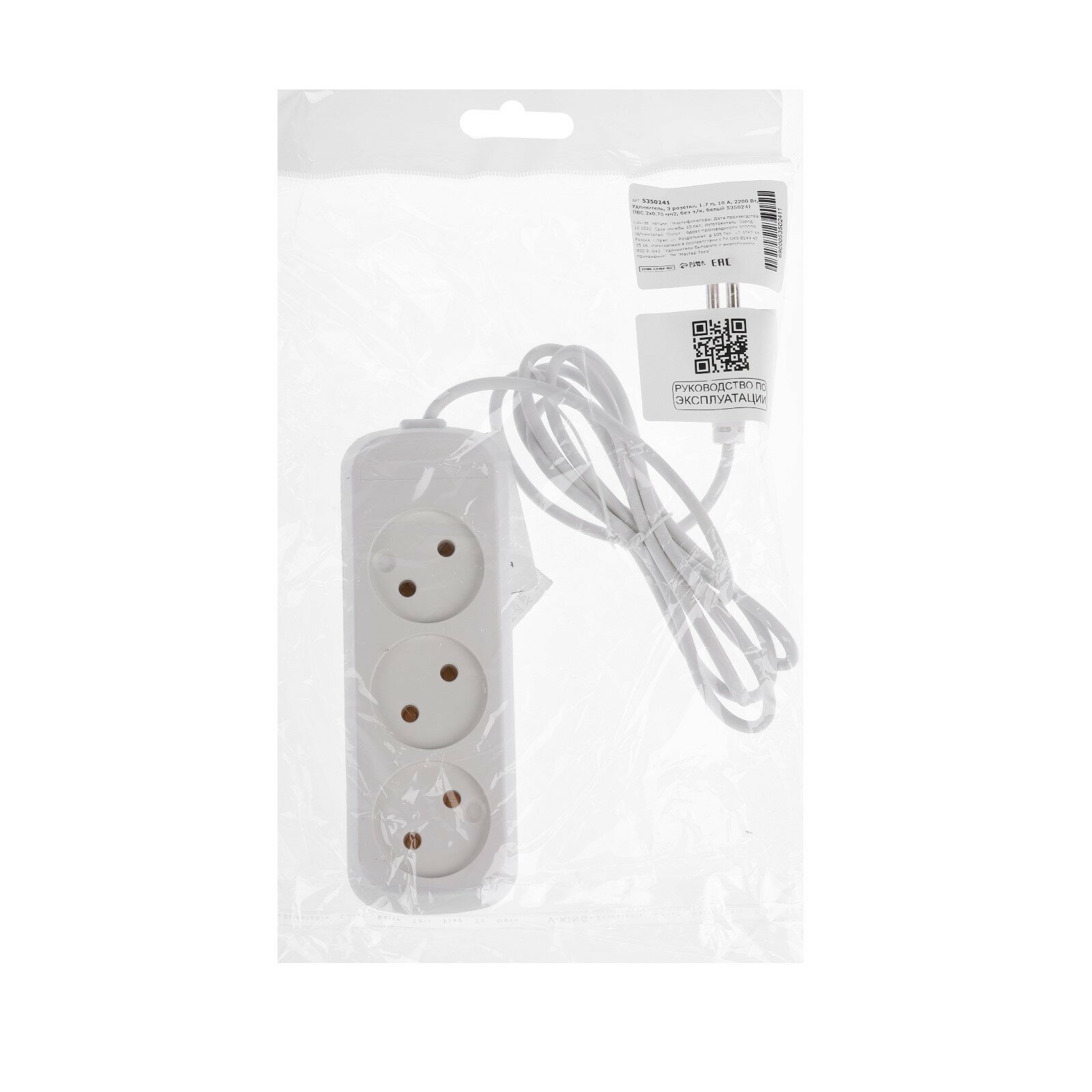 Купить Удлинитель 3 розетки, 1.7 м, 10 А, 2200 Вт, ПВС 2х0.75 мм2, без з/к, белый