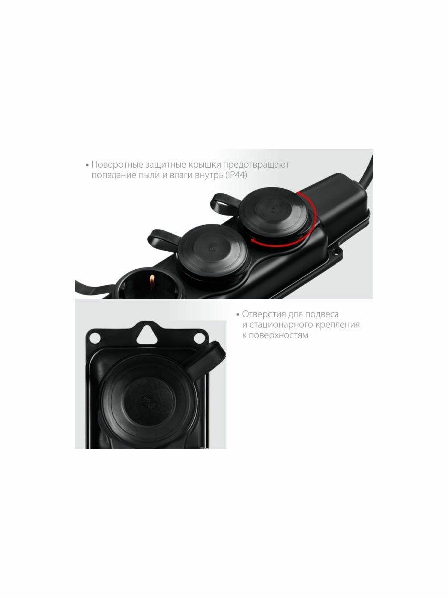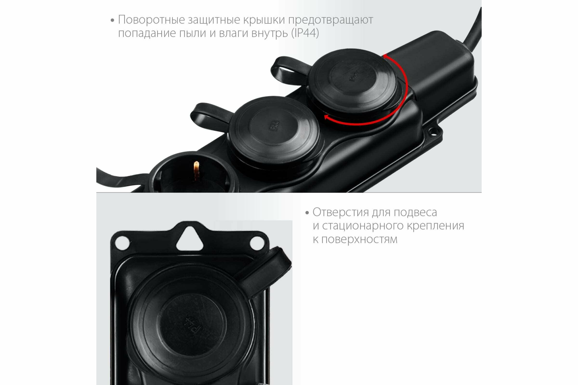 | Особенности | выключатель на корпусе, розетки с крышкой, световая индикация, удлинитель для переноса освещения |