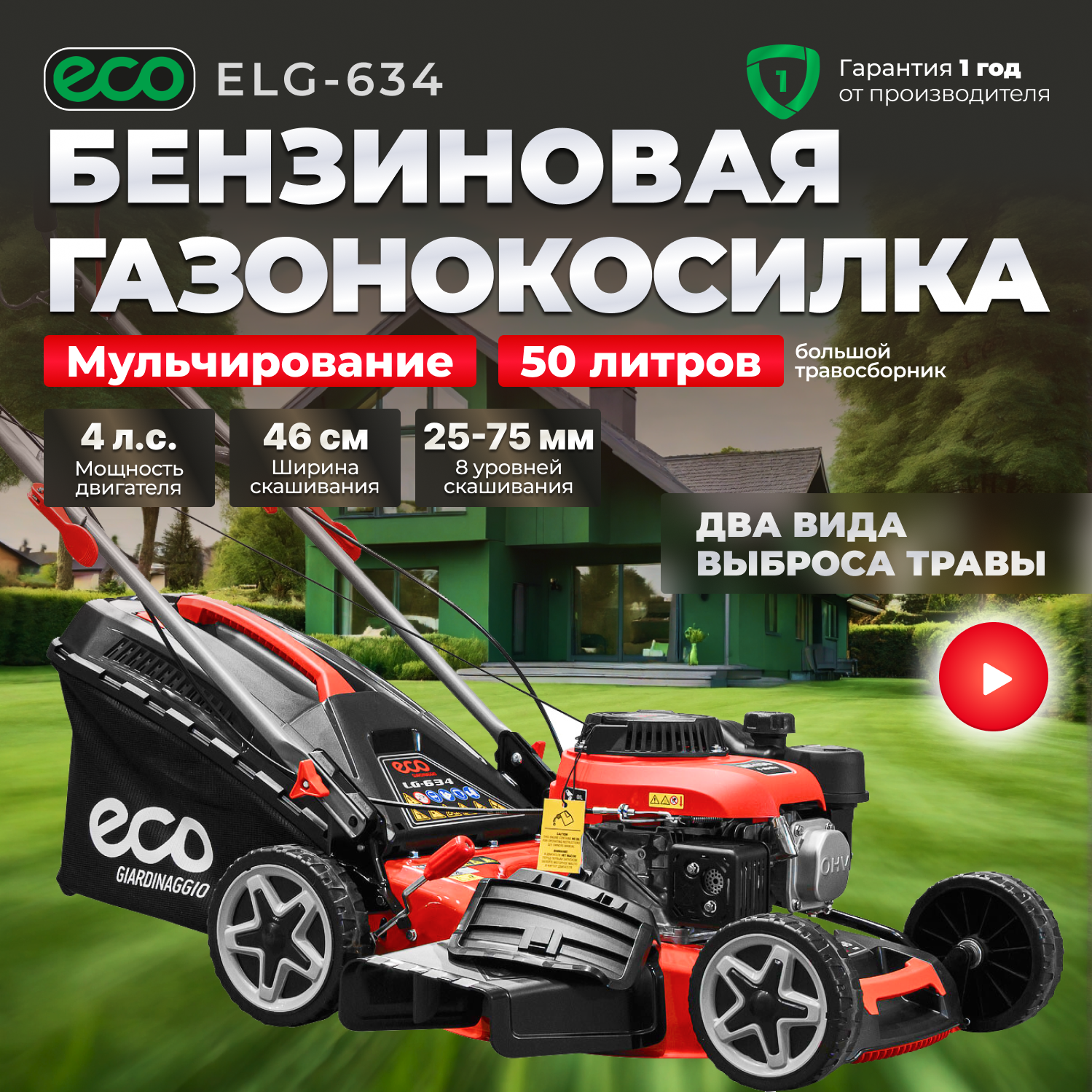 Газонокосилка бензиновая самоходная ECO LG-634 (EC3420-1) интересное: