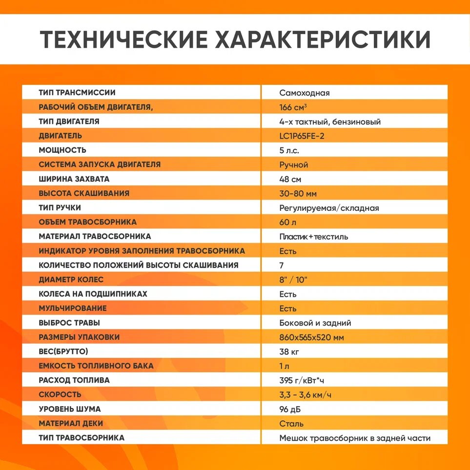 | Максимальная высота скашивания | 80 мм |