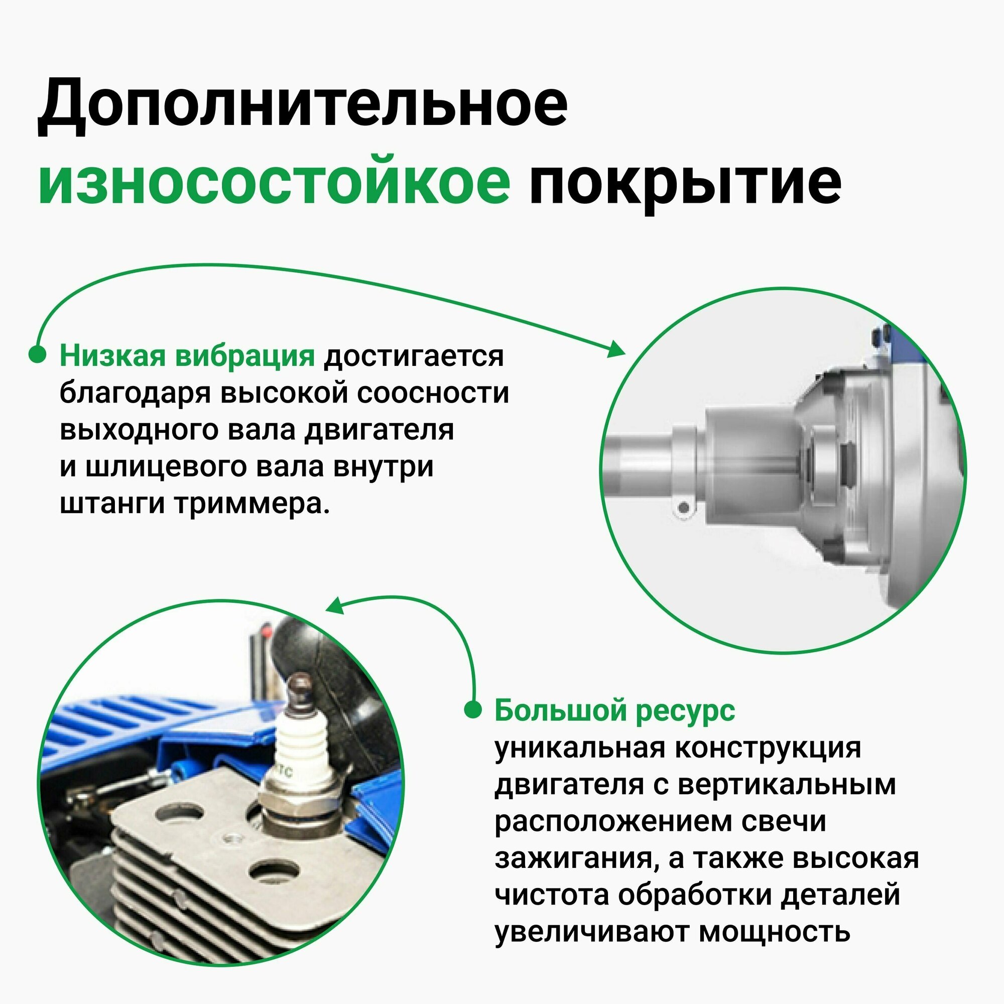| Подробная комплектация | катушка с нейлоновой леской, 3-х лопастной нож, защитные очки, комплект ключей для сборки и обслуживания, емкость для подготовки топливной смеси |