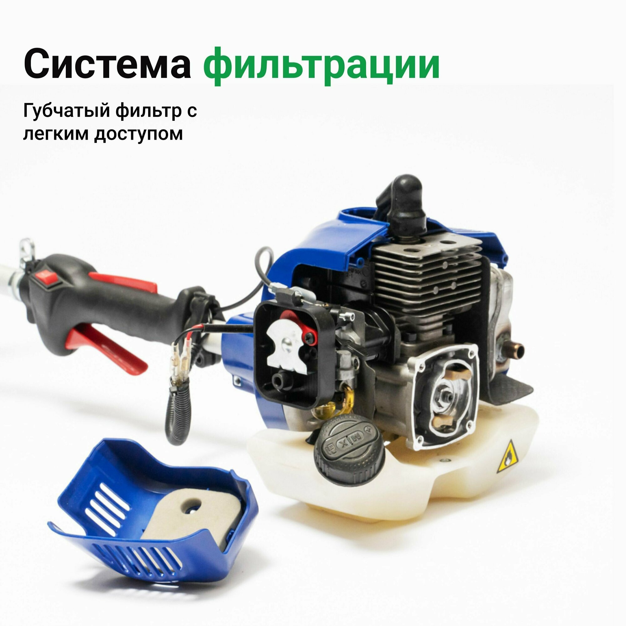 | Особенности | двигатель SK1E34F-2E одноцилиндровый с воздушным охлаждением; губчатый воздушный фильтр; штанга 24 мм диаметром, внутри шлицевой вал 7 х 7 мм в диаметре; разъемная штанга |
