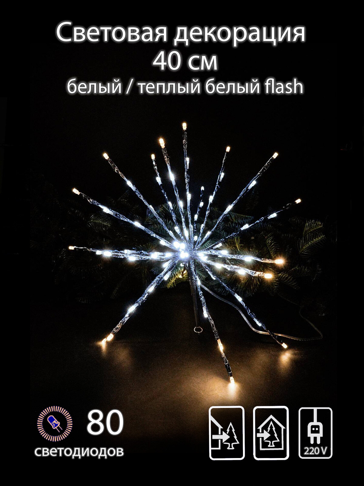 Светящаяся композиция ёжик мерцающий, 20 лучей, 60 теплых белых и 20 мерцающих холодных белых LED ламп, 40 см, SNOWHOUSE TB-40-WW/W