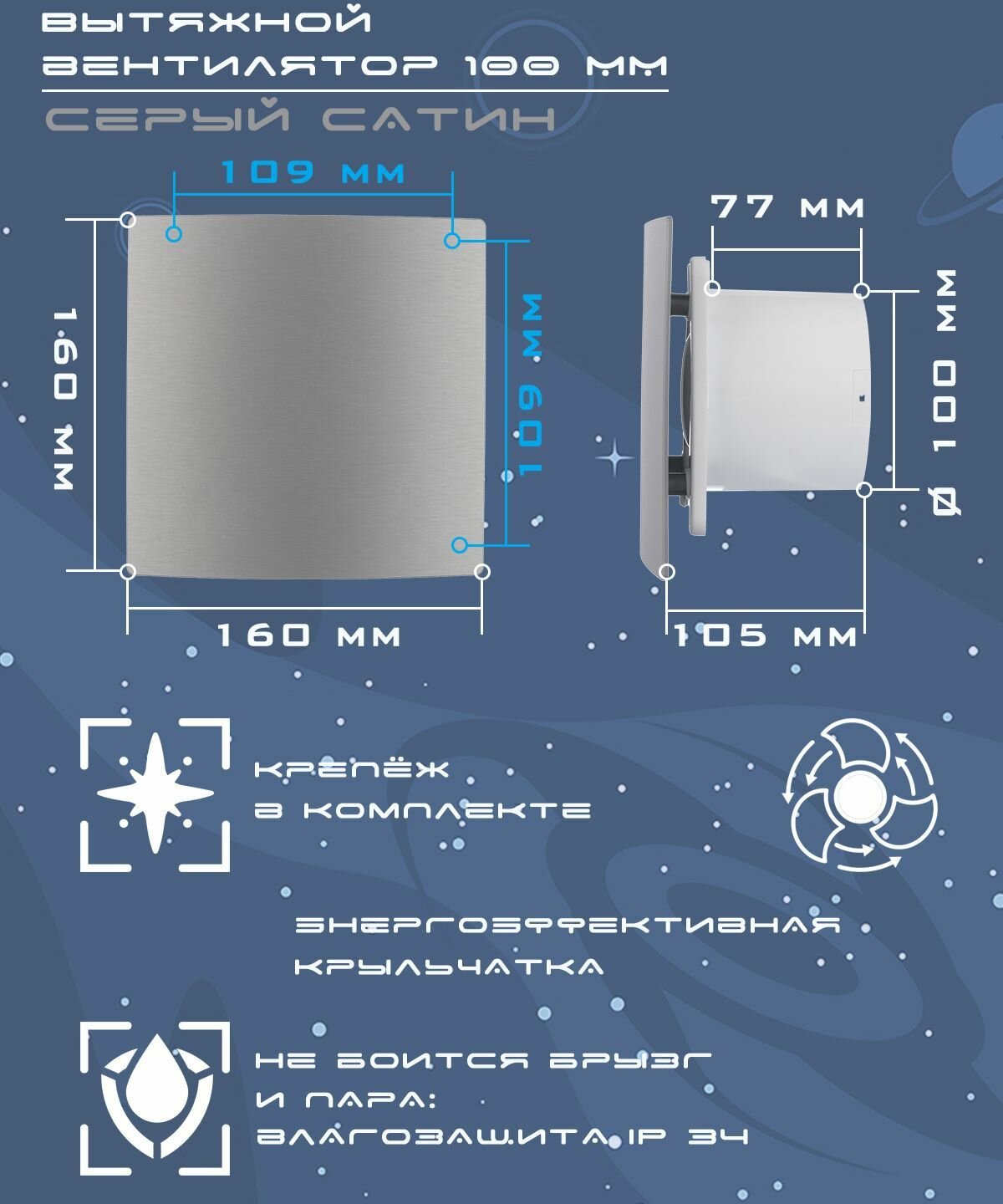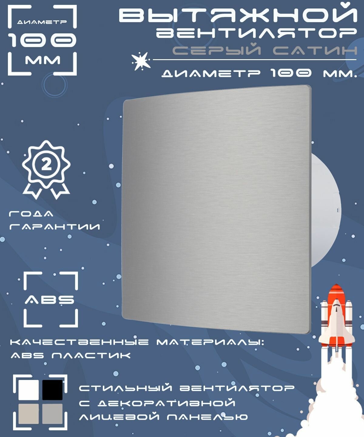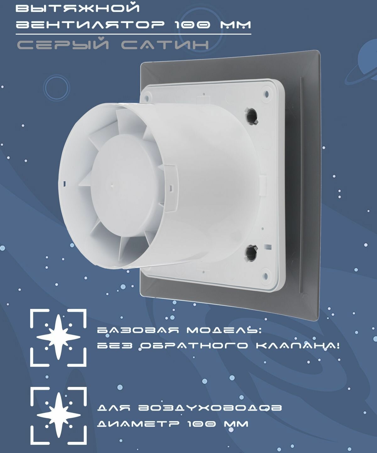 Вентилятор вытяжной декоративный космо диаметр 100 мм серебро