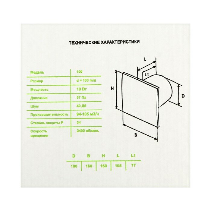 Вентилятор осевой / вытяжка в ванную / вытяжка в туалет d100 мм, белый