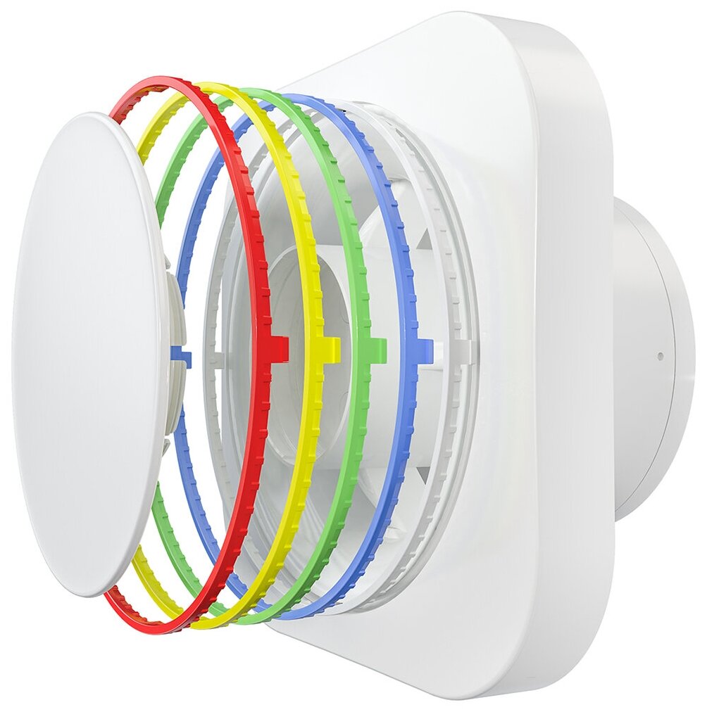 Вентилятор вытяжной осевой ERA DISC 5 BB, D 125 мм, с двигателем на шарикоподшипниках, короткий фланец 54 мм, белый, 4 сменных цветных кольца