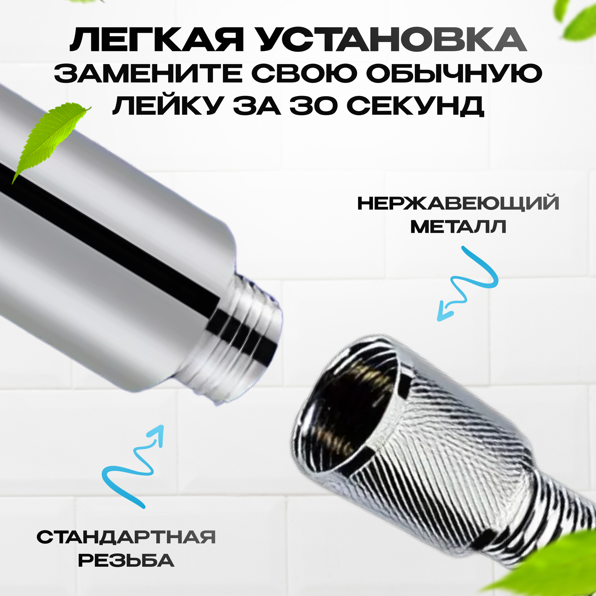 СохранитьЛейка для душа со шлангом 1,5м и держателем хром, серебристая, водосберегающая, 5 режимов, держатель для лейки, душевой комплект серебристый, VoLoMarket интересное:
