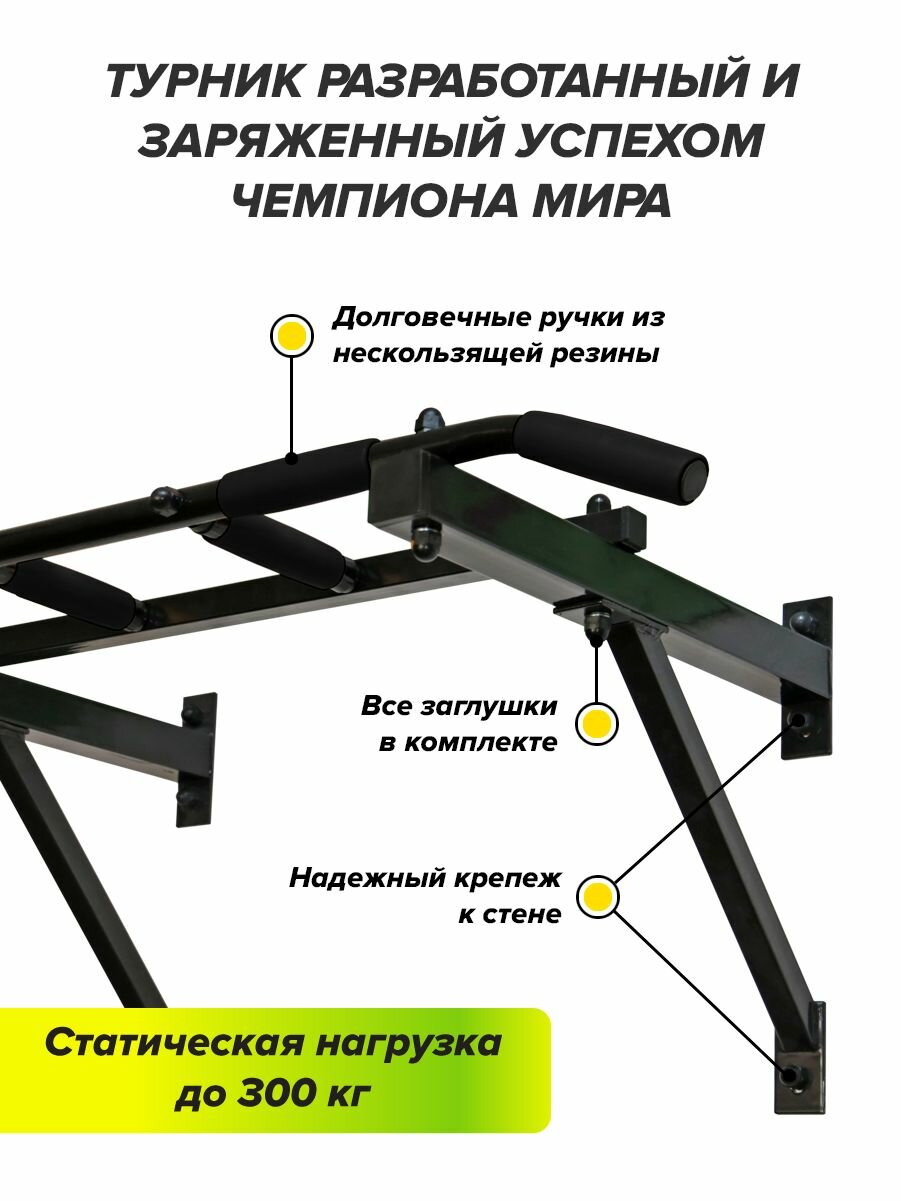 Турник настенный 3 в 1 брусья пресс тренажер для спорта дома, усиленный, нагрузка 300кг Триумф черный (с неопреновыми ручками)