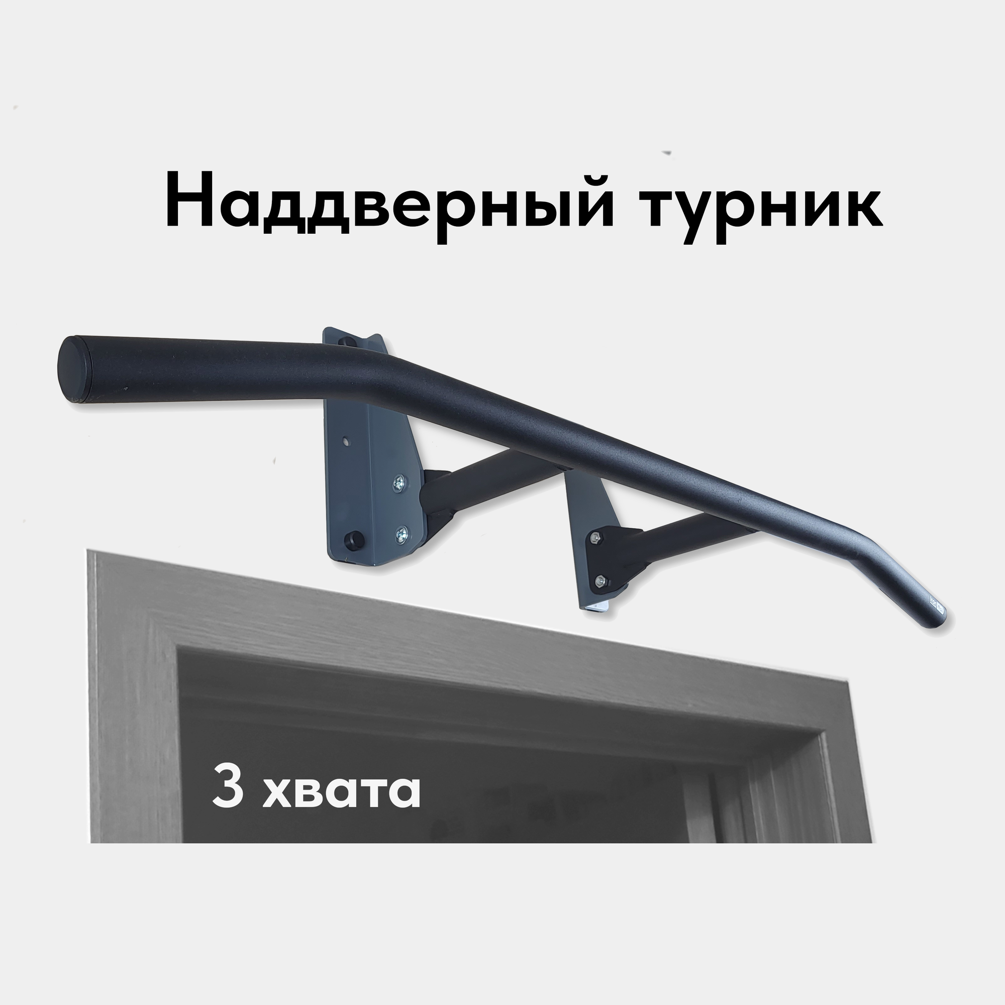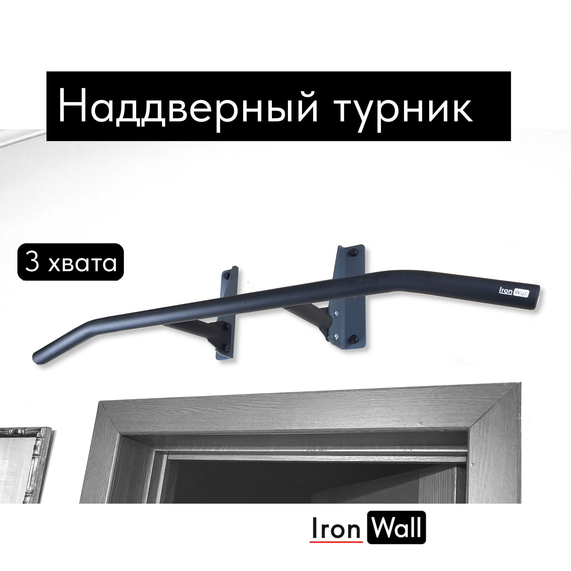 Турник наддверный IronWall PRO модель D1 4-00 c чёрной перекладиной для трех видов хвата и чёрными кронштейнами крепления к стене