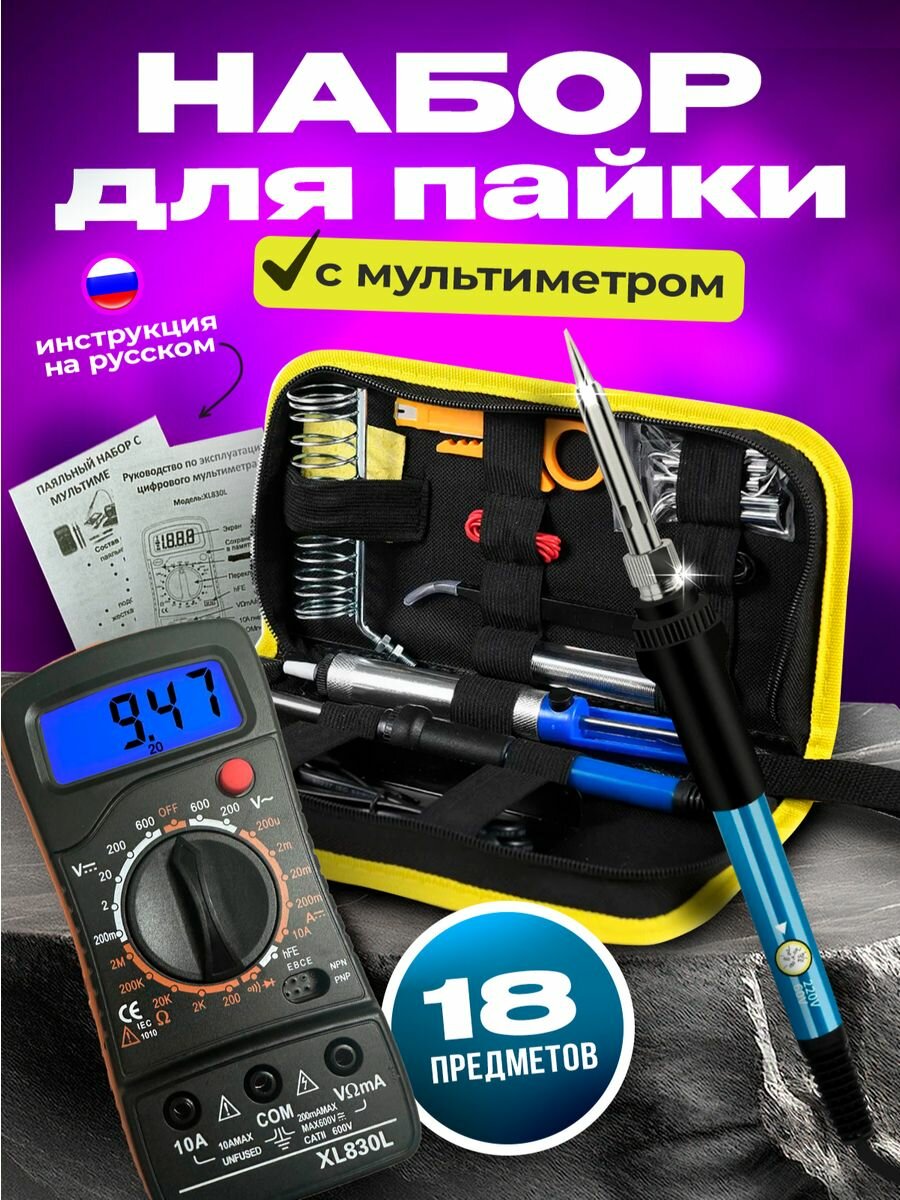 Паяльник электрический, паяльный набор с мультиметром интересное: