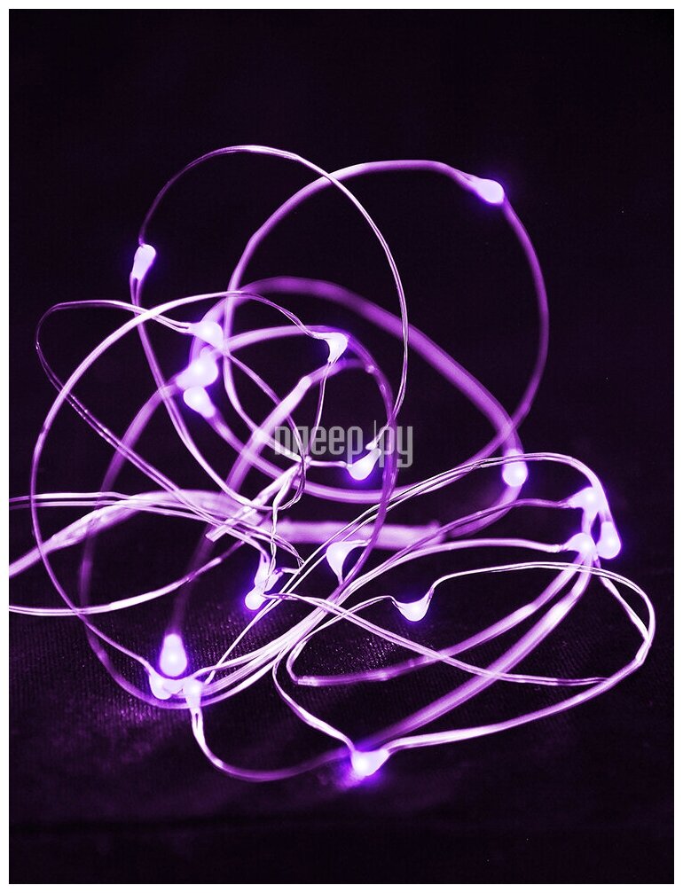 Гирлянда 20 минисветодиодов, 1.9 м, на батарейках, фиолетовый