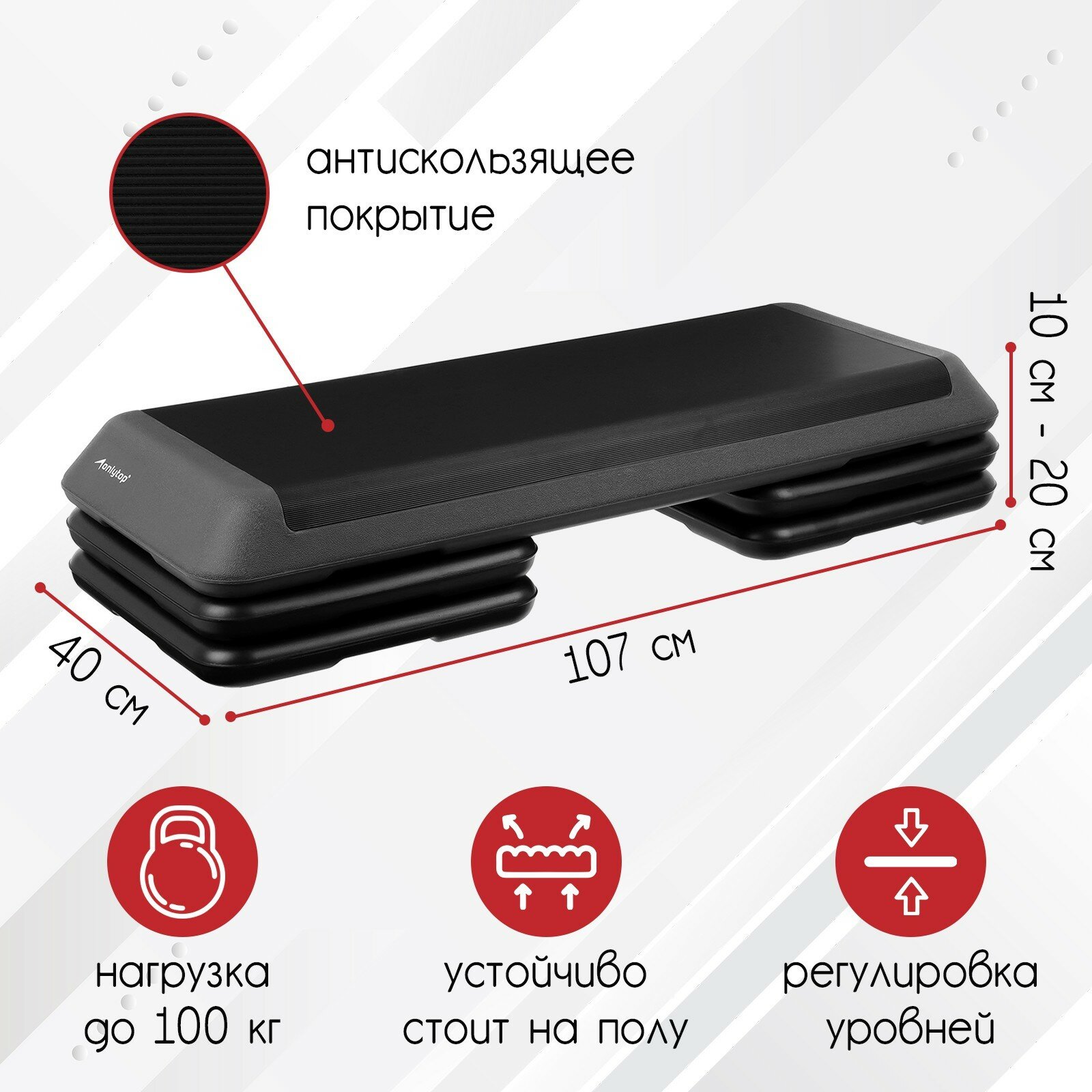 Степ-платформа 45 × 27 × 13 см, нагрузка до 80 кг