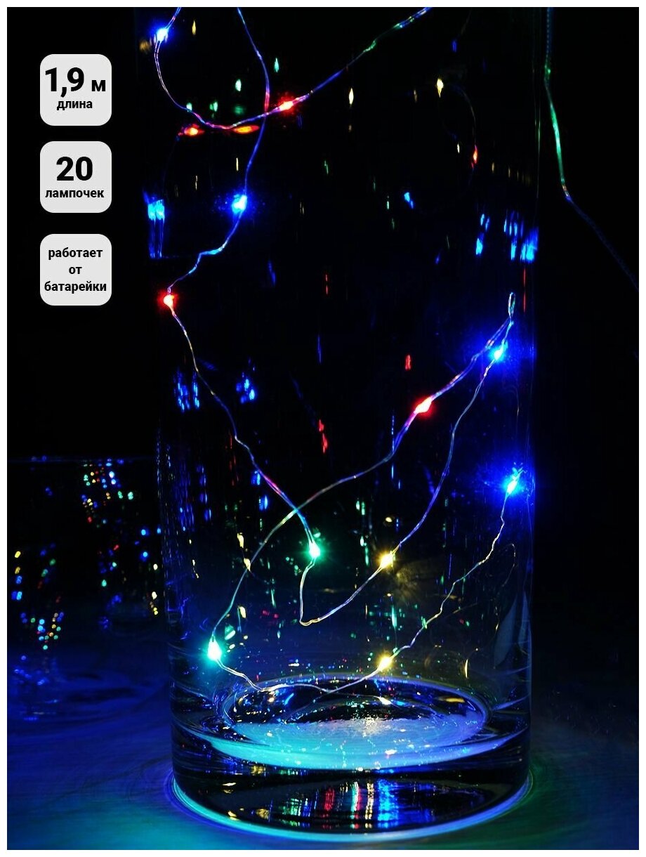 Купить Гирлянда на проволоке / роса / SH Lights 1,9м на батарейках 20 разноцветных минидиодов LDM020M-BO