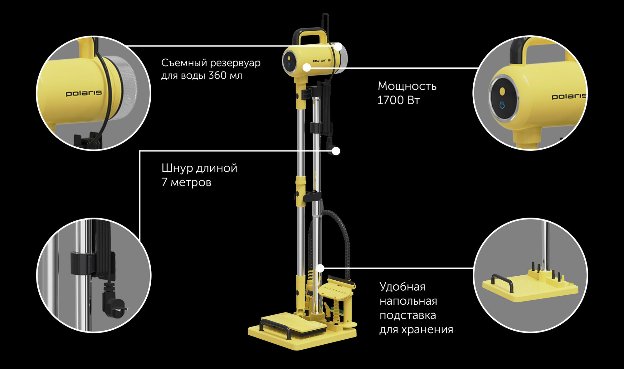 POLARIS PSC 1711C желтый/черный Пароочиститель интересное: