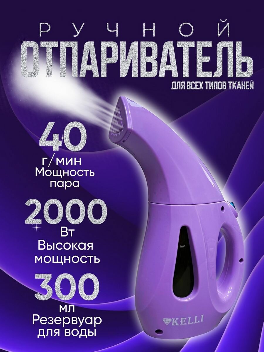 Отпариватель техно-вилка Kelli KL-819 ручной, мощность 2000 Вт, для всех типов тканей, лиловый