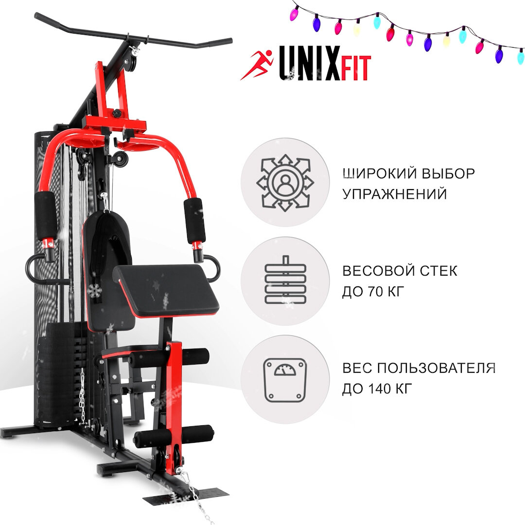 Силовой комплекс, спортивная мультистанция UNIX Fit BLOCK PRO, закрытый стек 70 кг, до 150 кг, для домашних тренировок, многофункциональный комплекс для всех мышц, домашний тренажер UNIXFIT