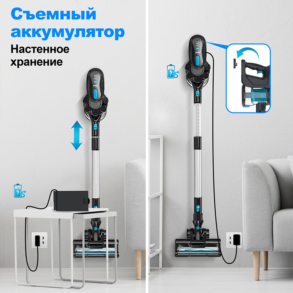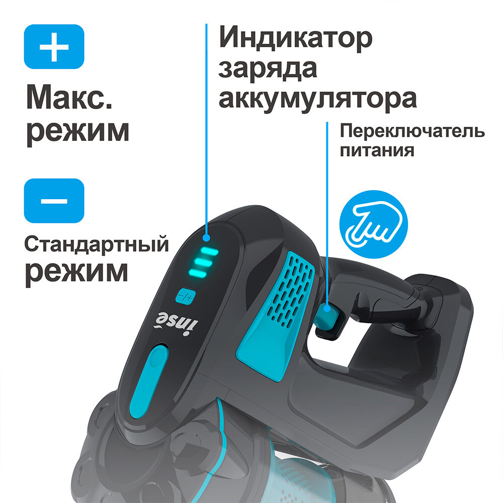 Аккумуляторный пылесос INSE V70, вертикальный пылесос для шерсти домашних животных интересное: