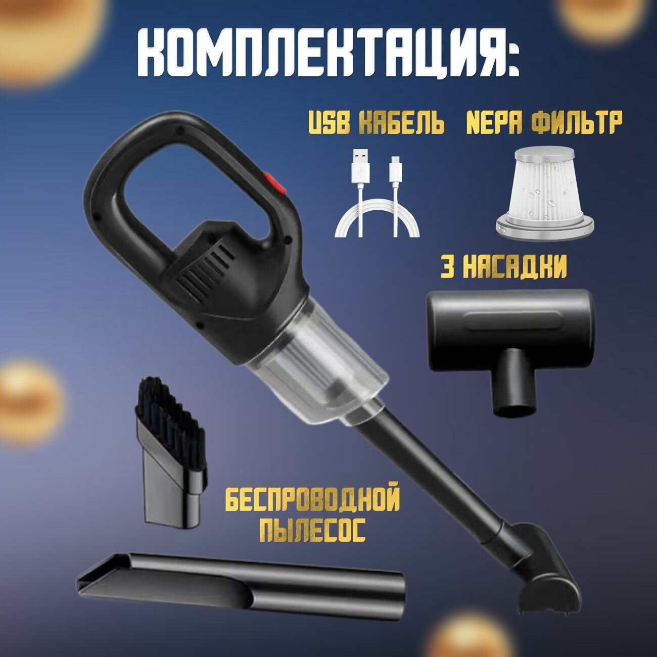 Беспроводной пылесос, Автомобильный пылесос, портативный, 3 насадки интересное: