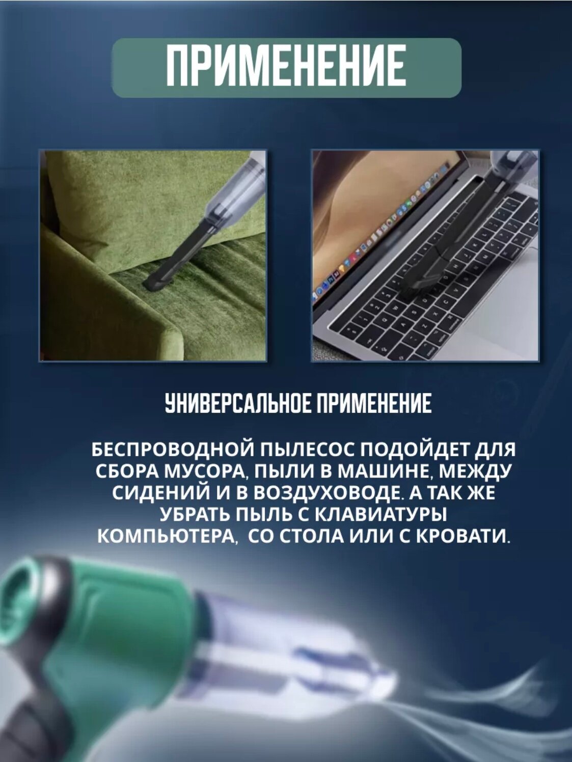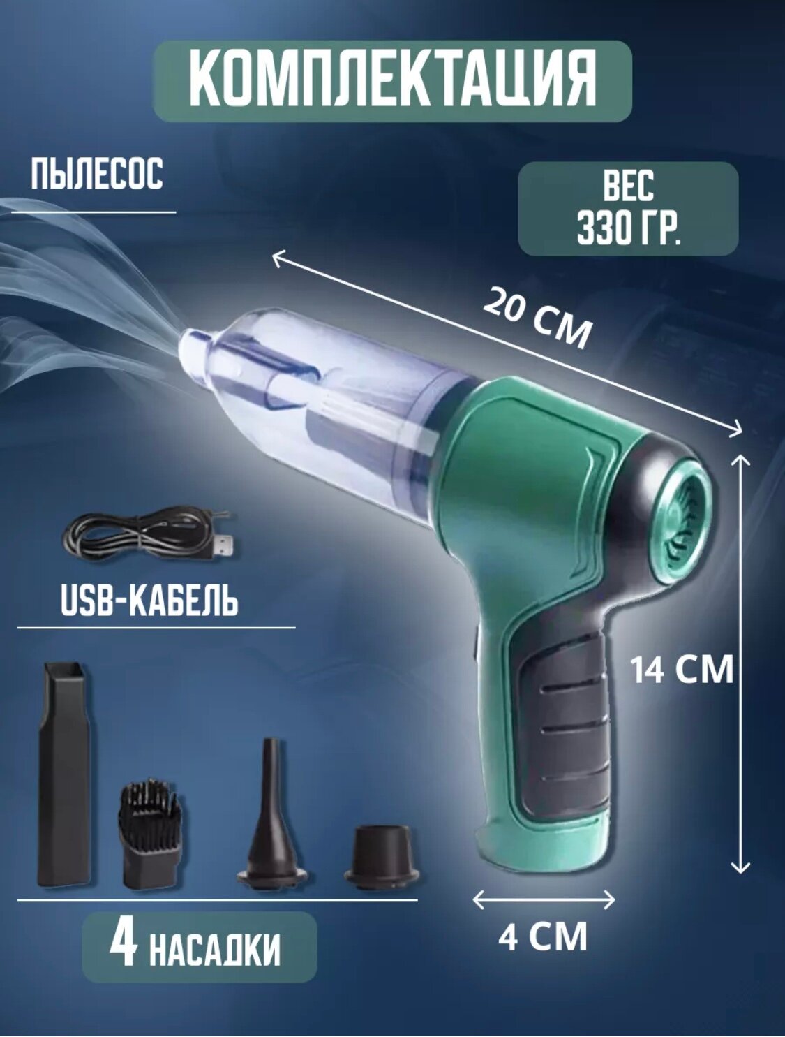 Беспроводной автомобильный пылесос с 4 насадками интересное: