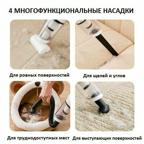 | В комплекте | зарядное устройство, насадка для автомобиля, насадка для мягкой мебели, щелевая насадка |