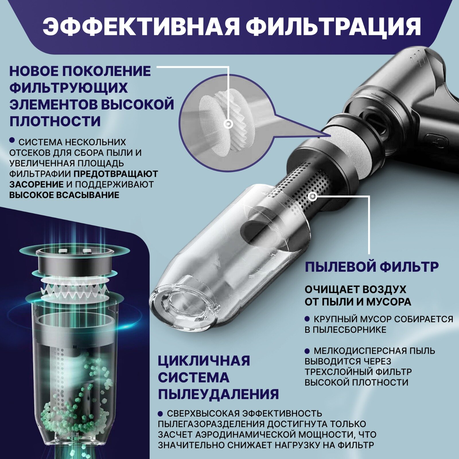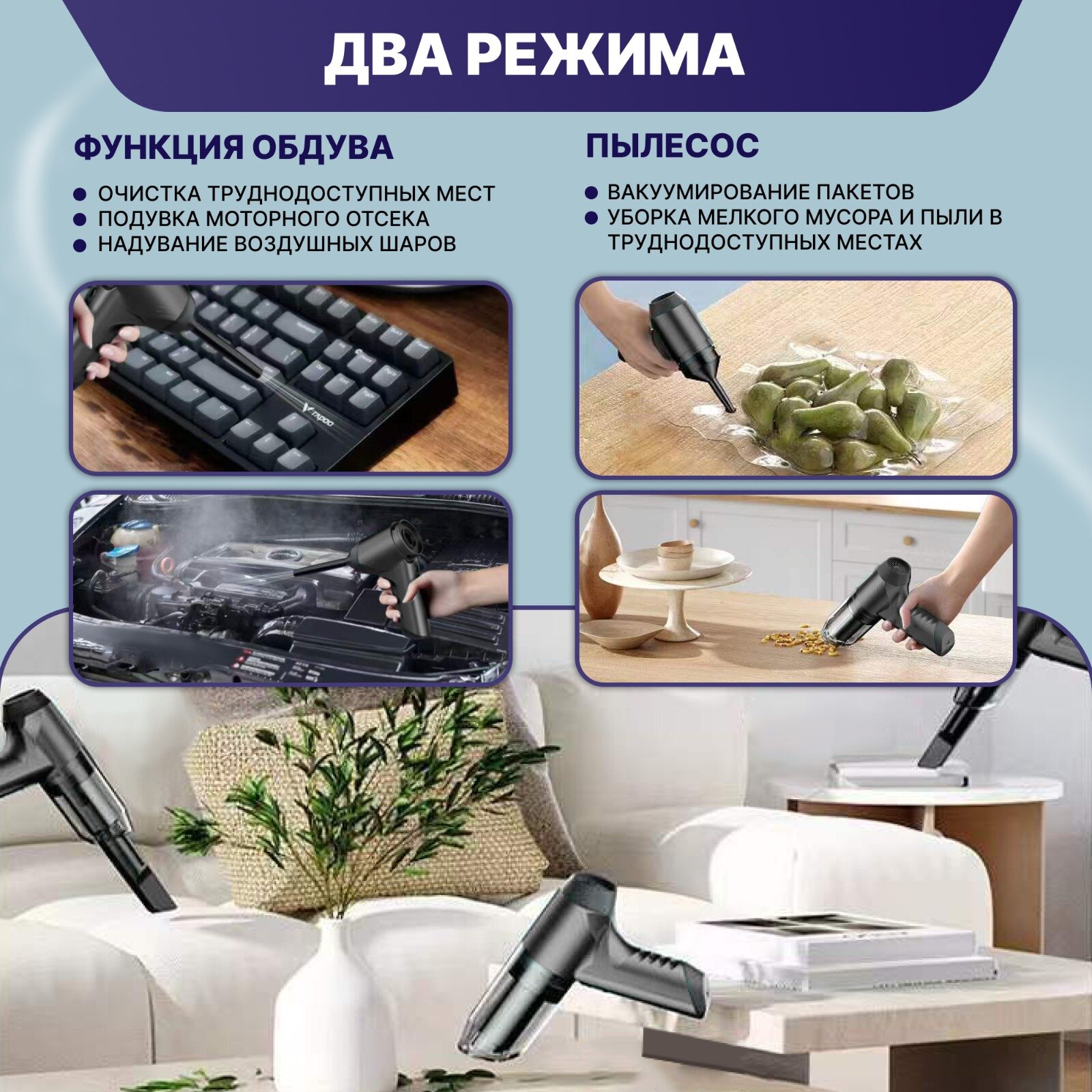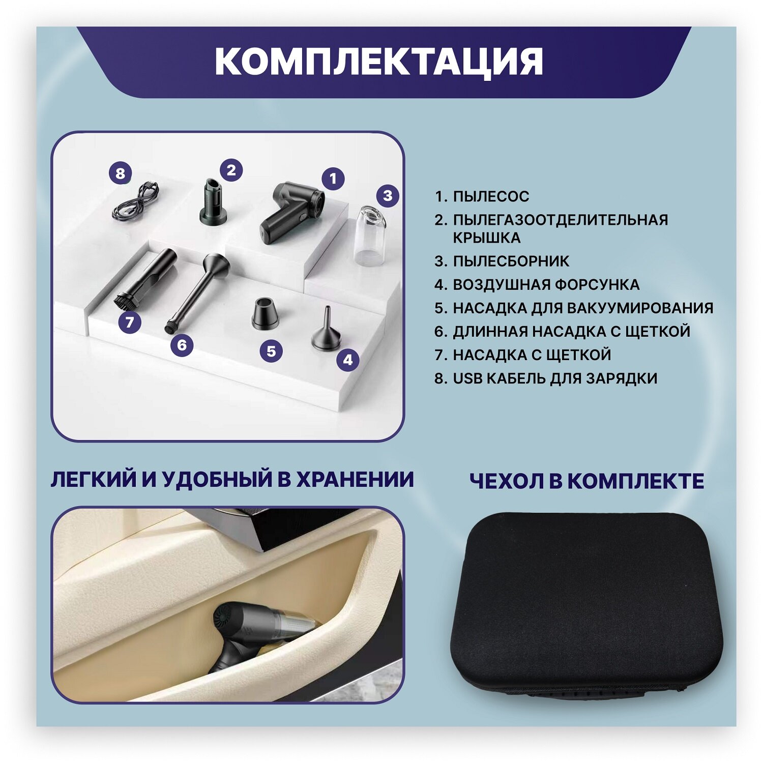 Автомобильный аккумуляторный мини-пылесос циклонного типа черный интересное: