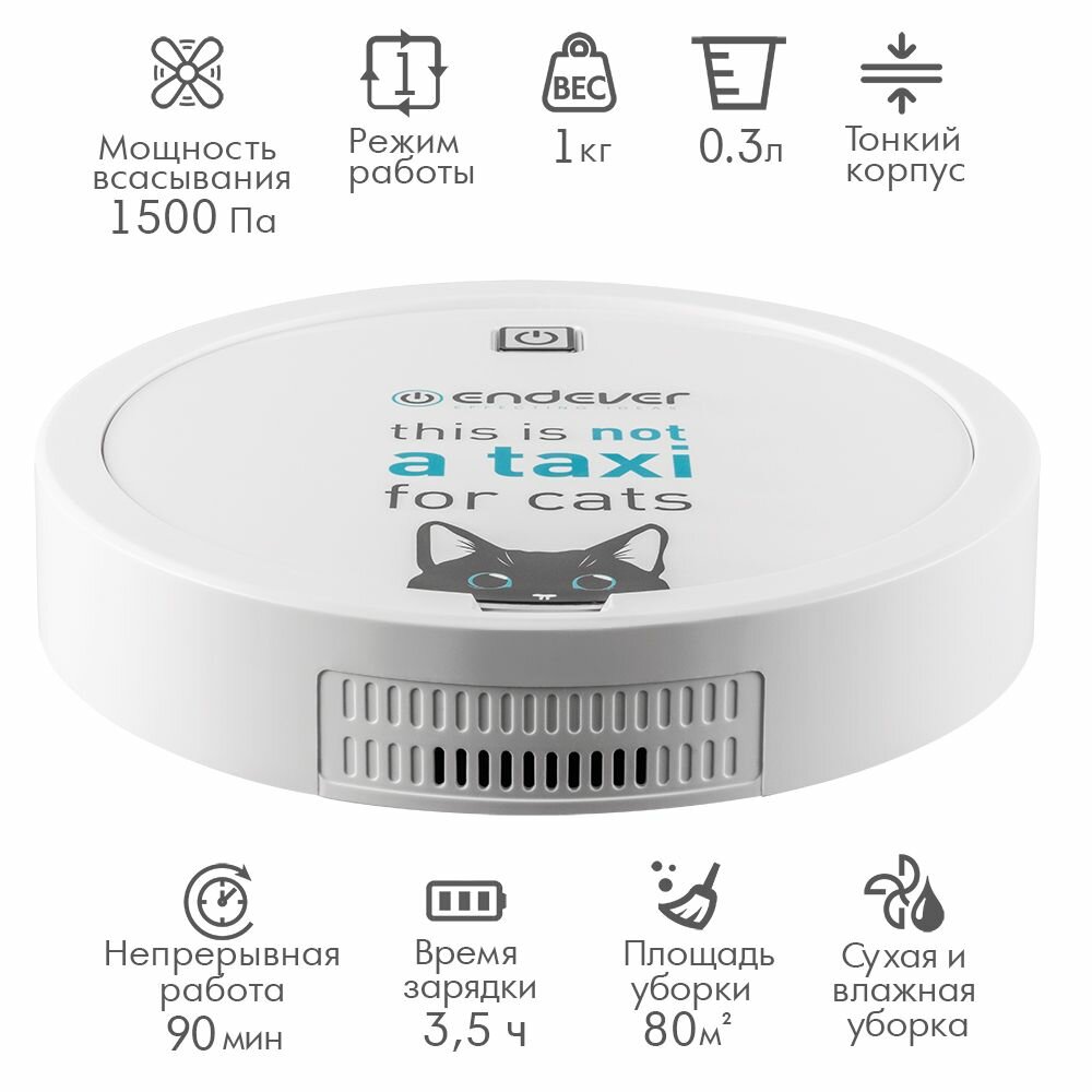 Робот пылесос с влажной и сухой уборкой ENDEVER Spectre-99, 55 Дб, площадь уборки 90-120 кв.м