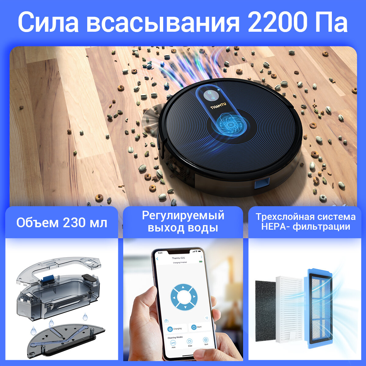 Робот-пылесос THAMTU G2S, русская версия, влажная и сухая уборка 2-в-1 интересное: