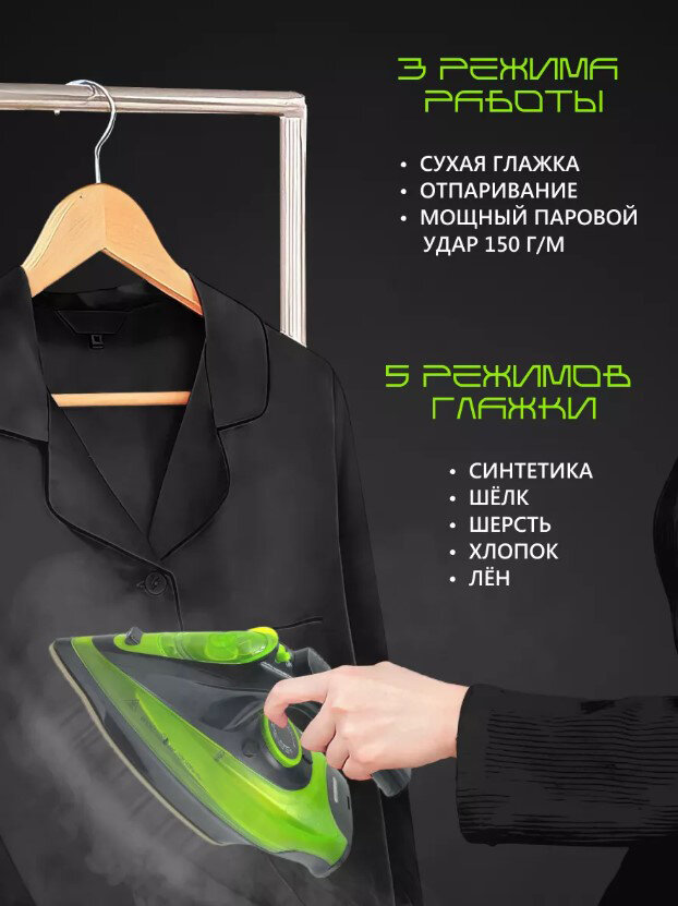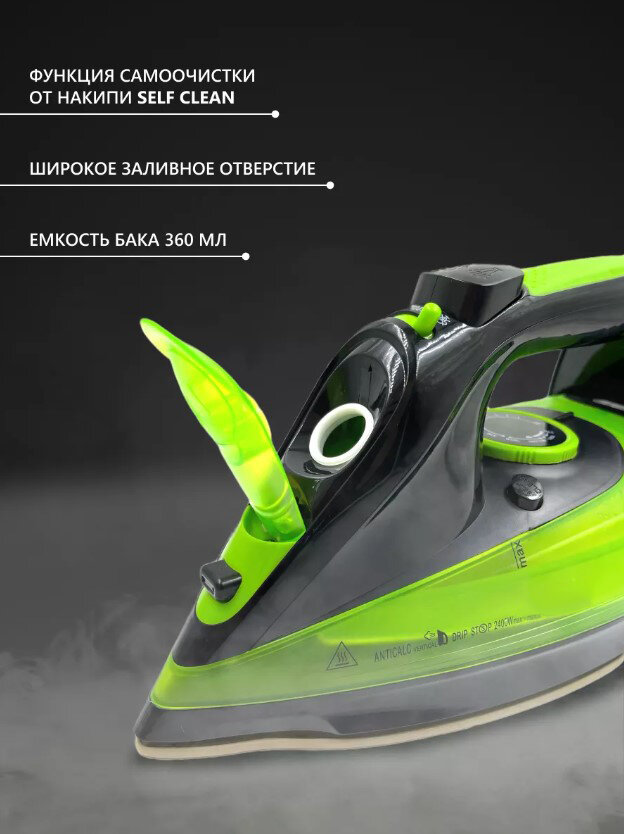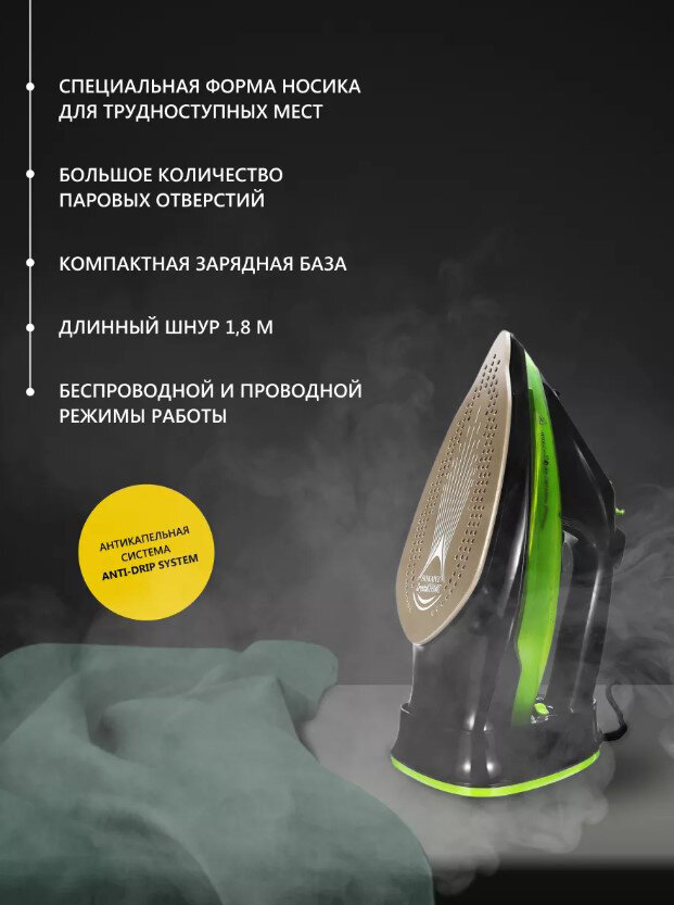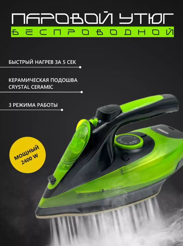 Утюг беспроводной, с функцией вертикальной глажки, паровой удар,домашний,антипригарное покрытие, система самоочистки,2400Вт, зеленый интересное: