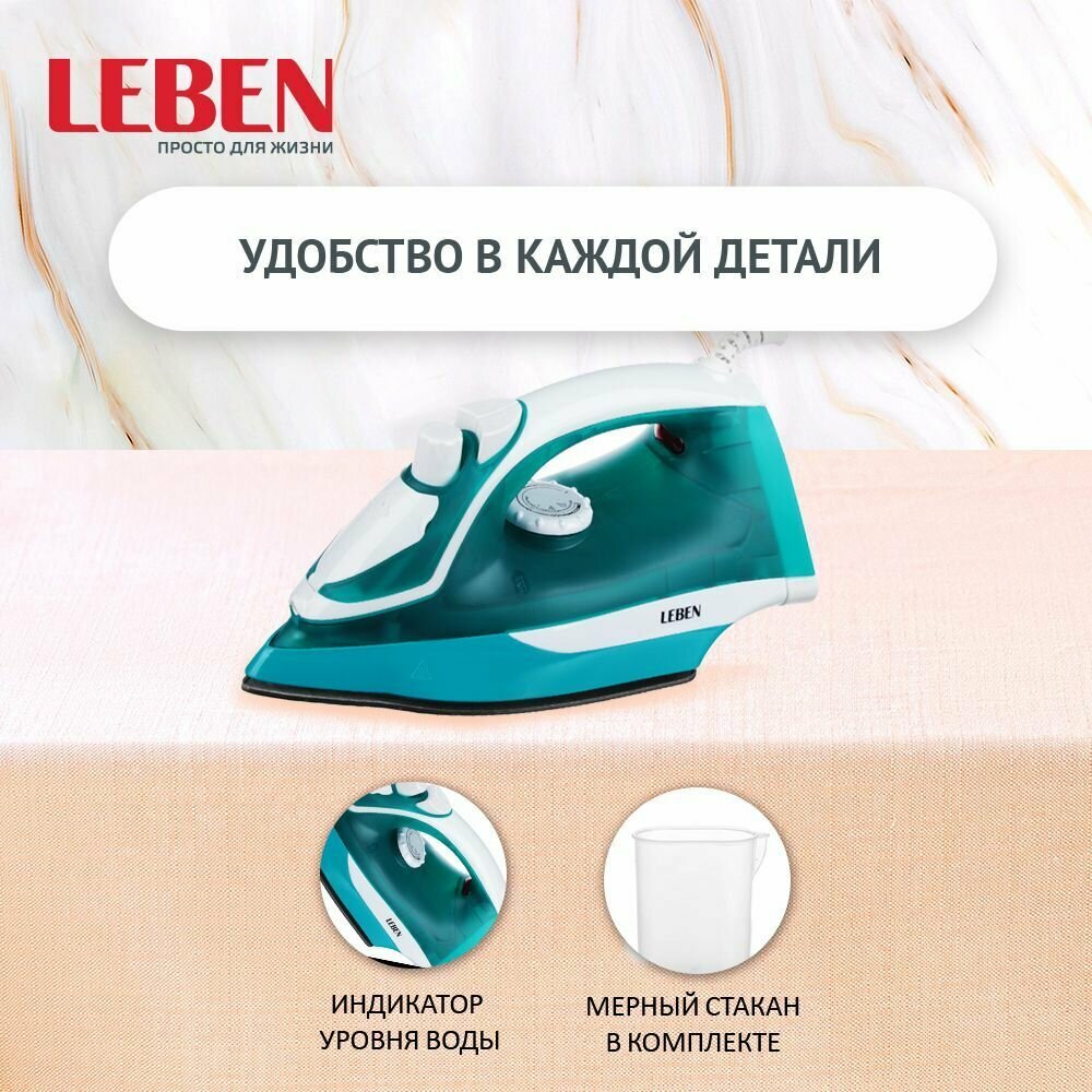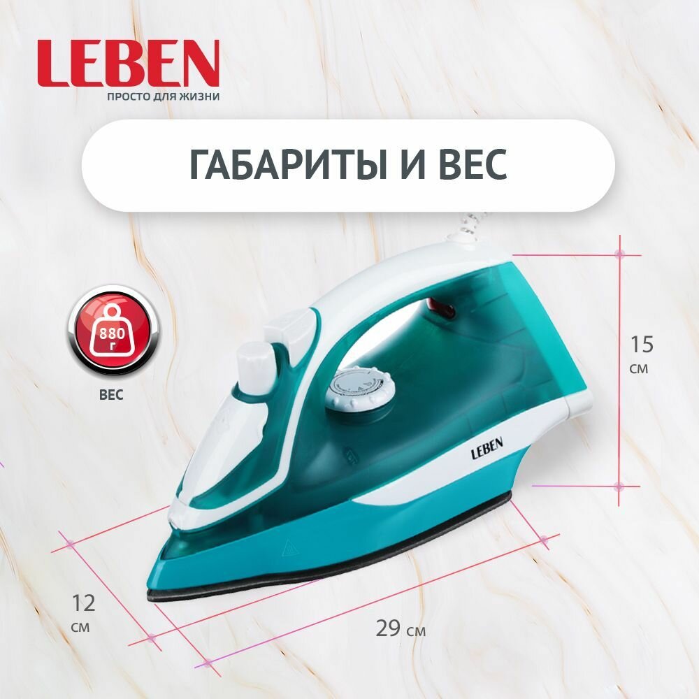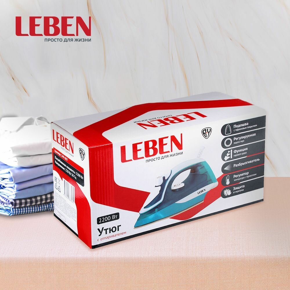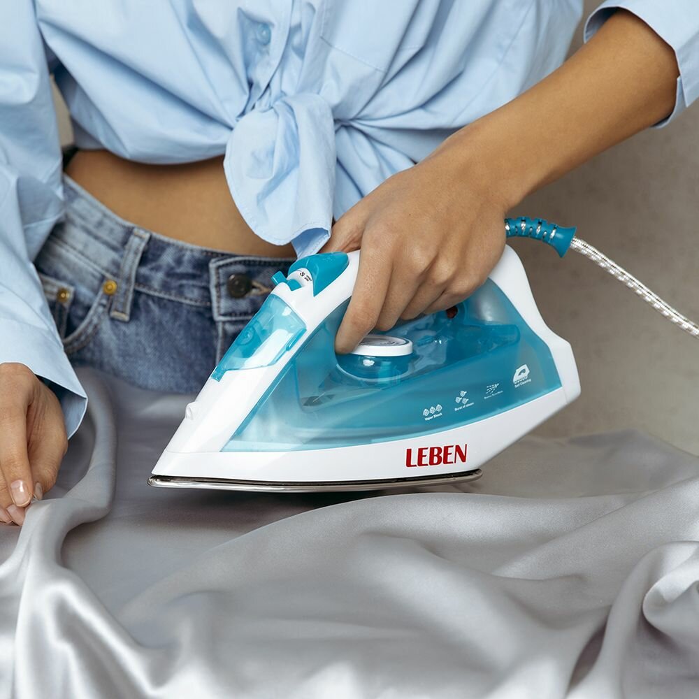 LEBEN Утюг с отпаривателем 2200Вт, подошва с тефлоновым покрытием, голубой
