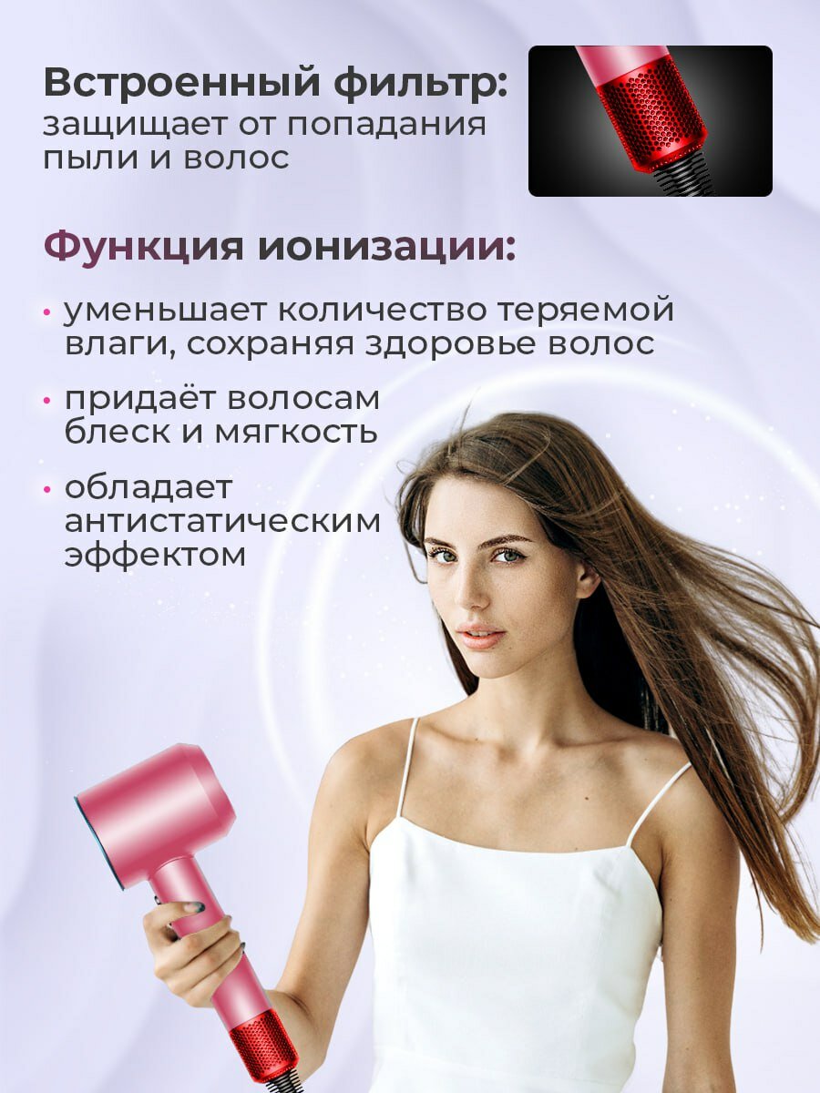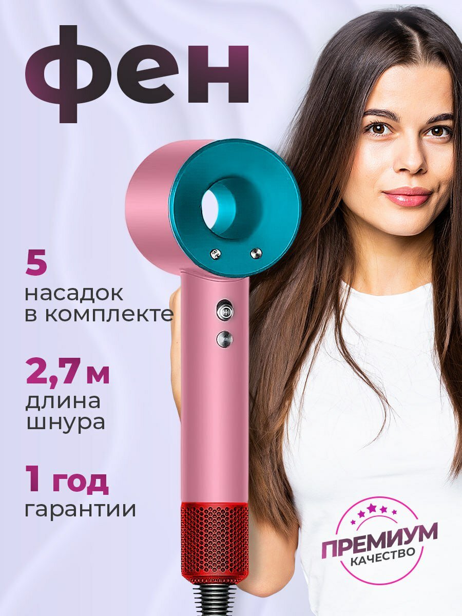 Профессиональный фен для волос iHair-1600 Super Hair Dryer 1600 Вт, 3 режима, 5 магнитных насадок, ионизация воздуха, розовый