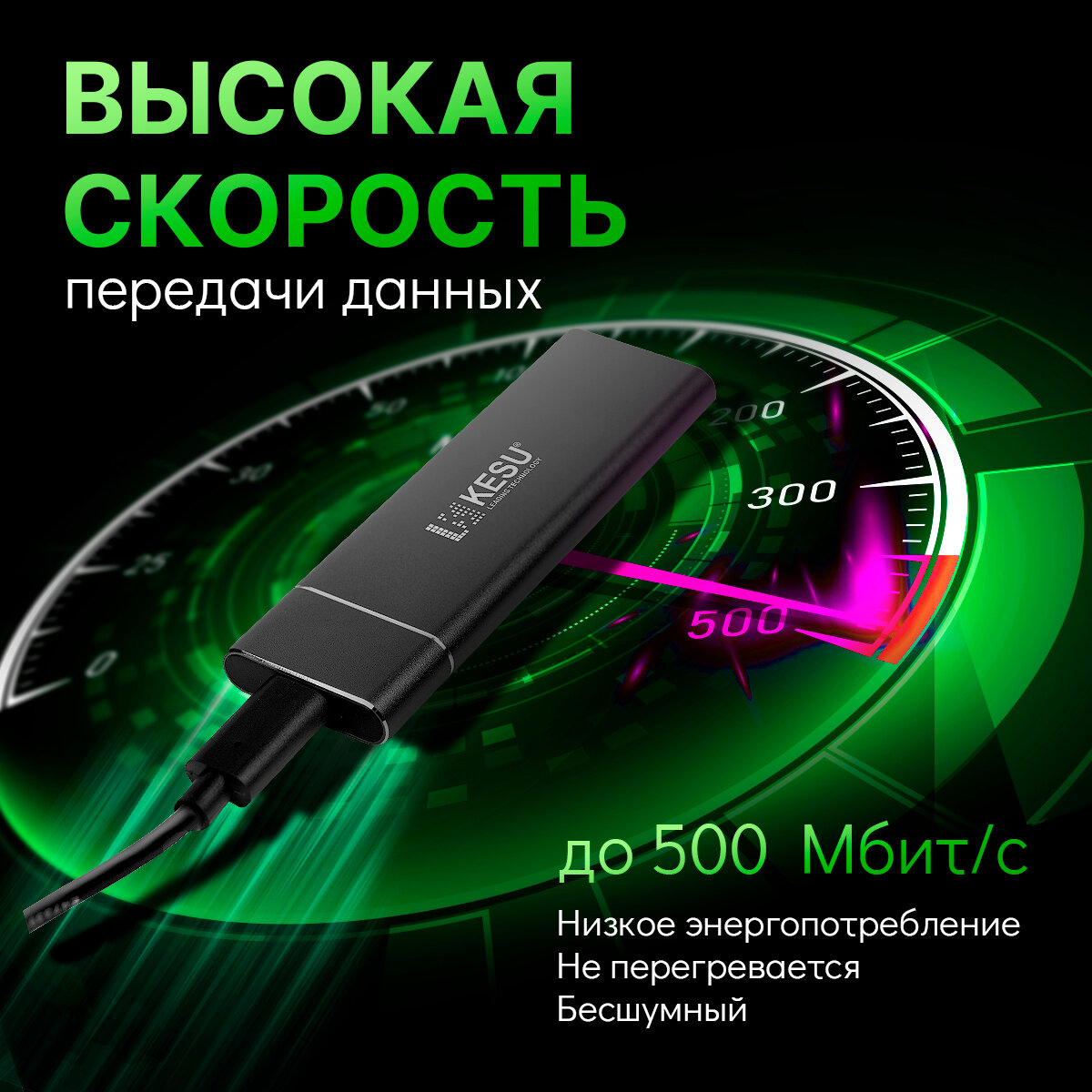 Внешний жесткий диск KESU 500ГБ, переносной SSD накопитель информации для PS4, PS5, XBOX X, XBOX S, съемный хард диск для пк/ноутбука/консоли, черный