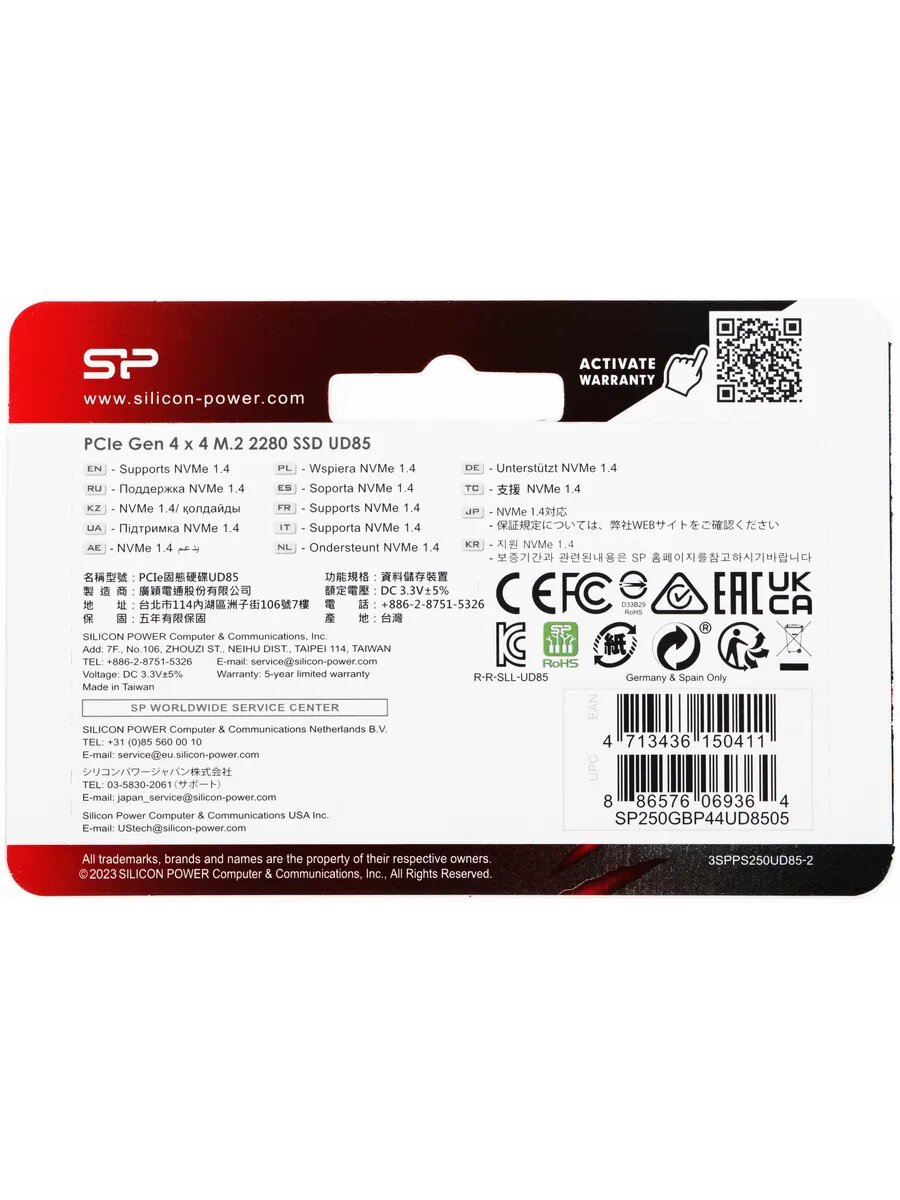 SSD накопитель Silicon Power M-Series UD85 SP250GBP44UD8505 250ГБ, M.2 2280, PCIe 4.0 x4, NVMe, M.2 интересное: