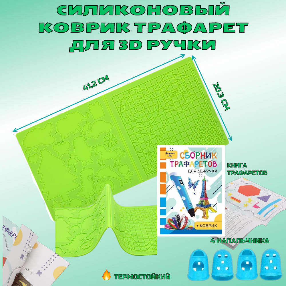 "Коврик-3D для рисования" - силиконовый коврик для 3D ручки + сборник трафаретов. Цвет зелёный интересное: