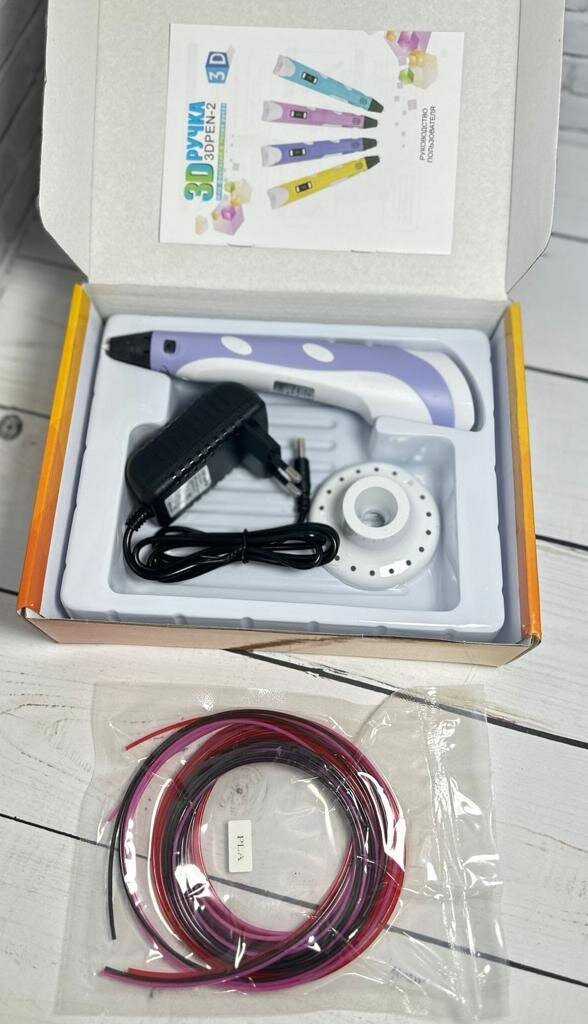 | Комплектация | 3д-ручка - 1 шт., адаптер питания - 1шт., подставка - 1шт., пластик PLA - 3шт., инструкция - 1шт. |