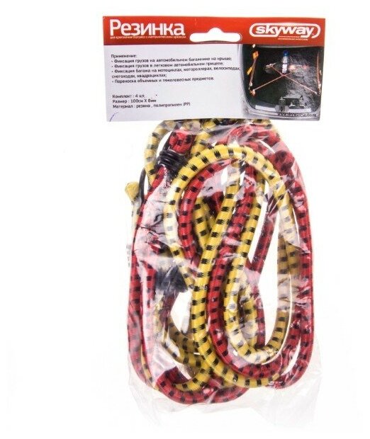 СохранитьНабор резинок в багажник (100 см) "SKYWAY" (металл, крючки, D-8 мм) (4 шт.) интересное:
