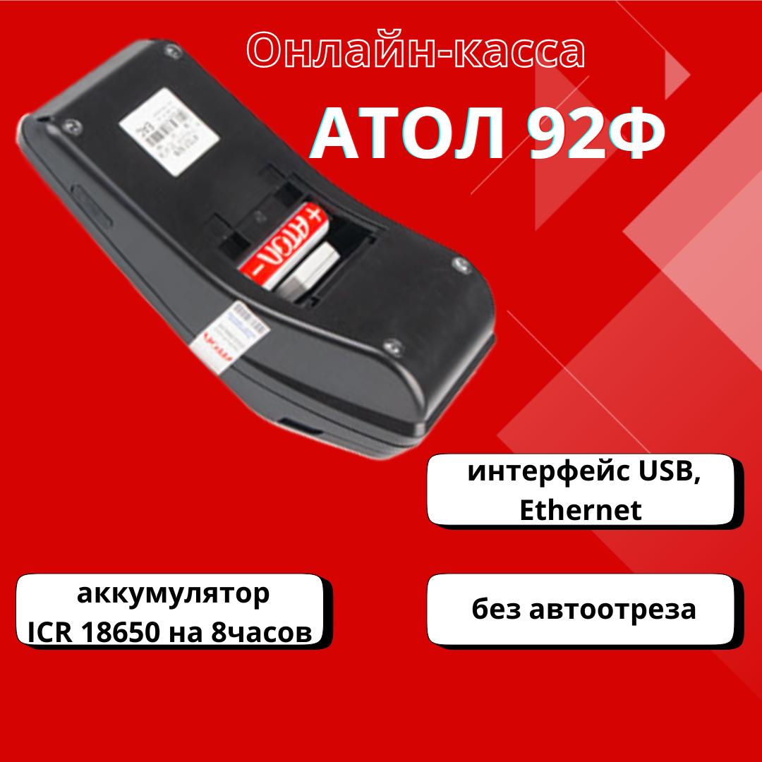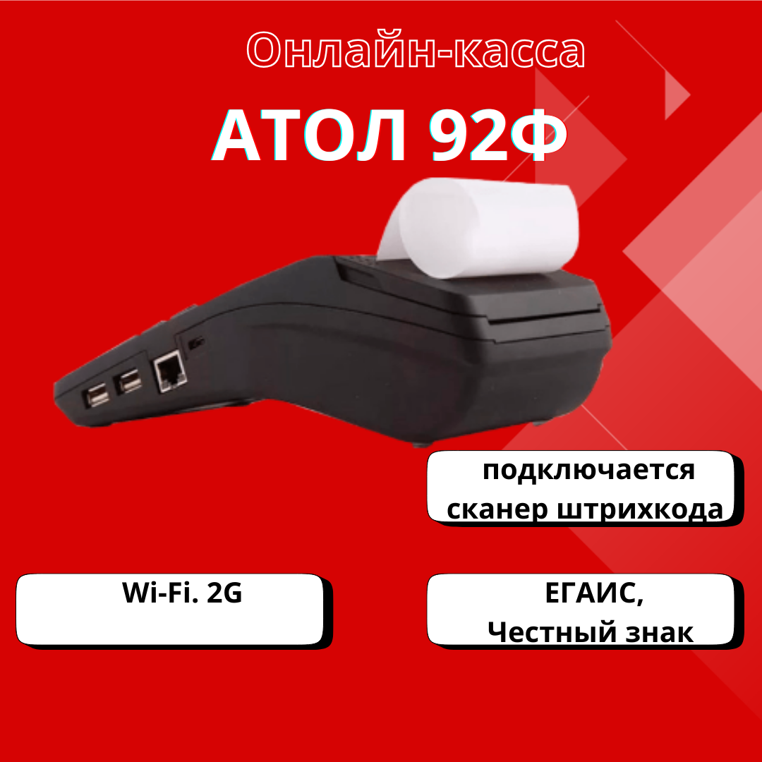 ККТ АТОЛ 92Ф. Черный. Без ФН. Ethernet. 2G. Bluetooth. Wi-Fi. 5.0